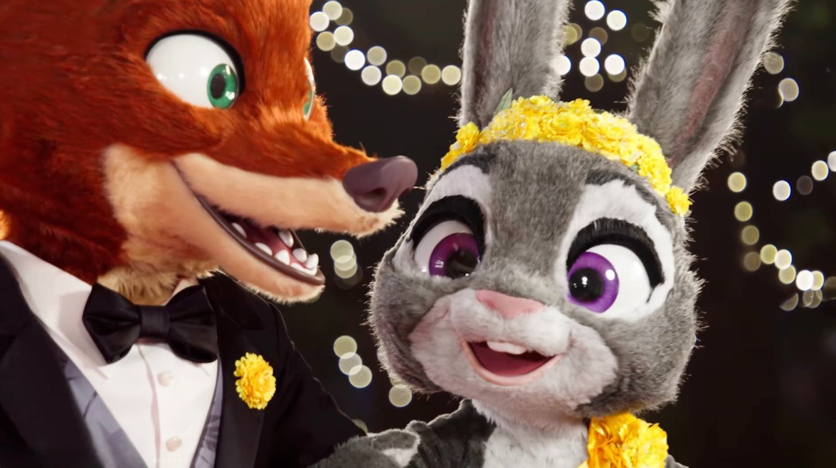 - The fun starts as soon as guests enter Shanghai Disneyland, where they will find Nick Wilde and Judy Hopps in their stunning new looks. Judy stuns in an elegant yellow gown with shimmering calendula-inspired headpiece details, while Nick steps out in a sharp suit and bow tie.