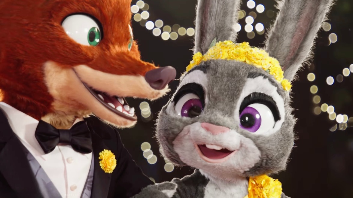 - The fun starts as soon as guests enter Shanghai Disneyland, where they will find Nick Wilde and Judy Hopps in their stunning new looks. Judy stuns in an elegant yellow gown with shimmering calendula-inspired headpiece details, while Nick steps out in a sharp suit and bow tie.