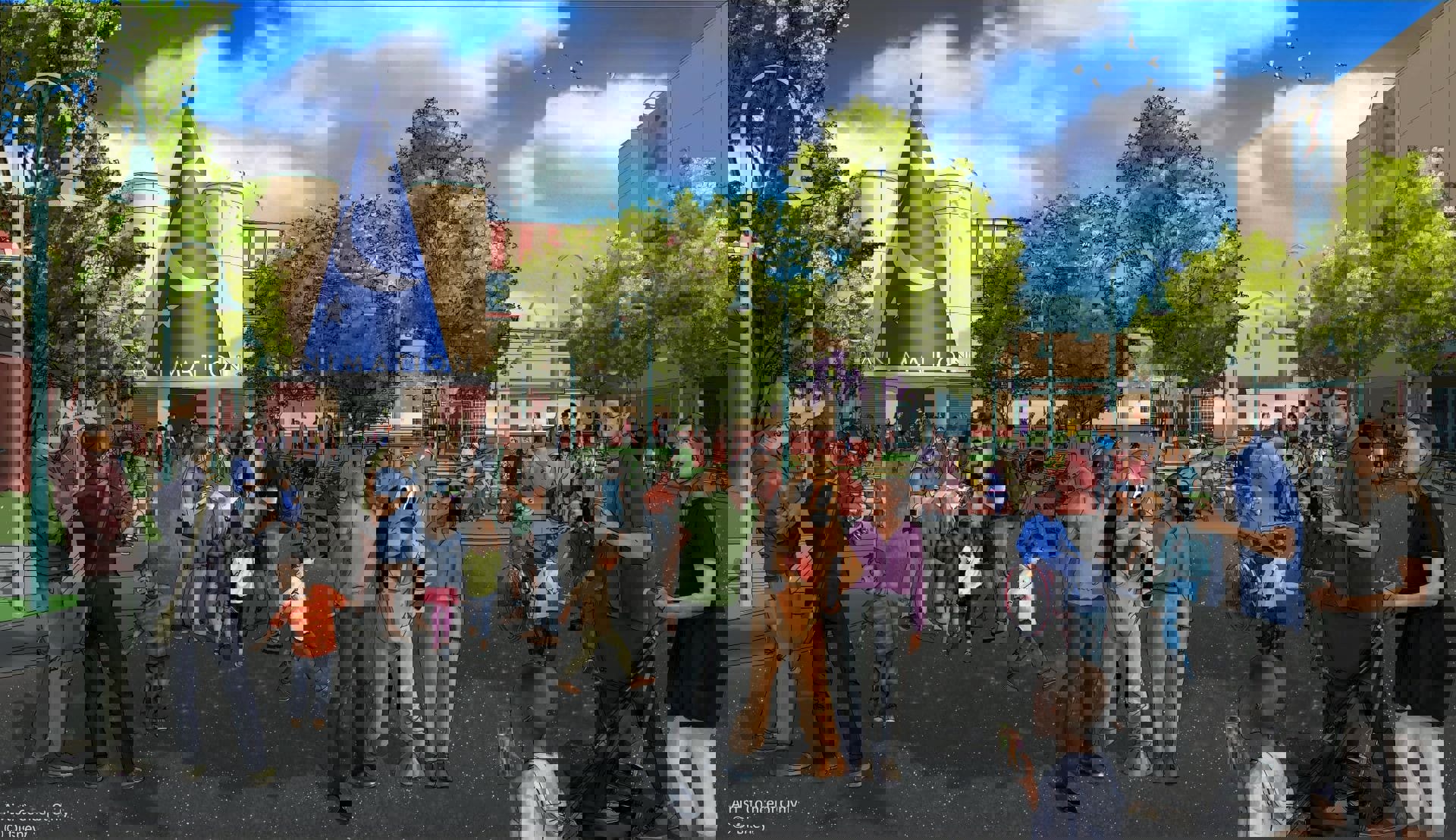 The Florida location will not be named in Roy E. Disney's honor, as that has been bestowed upon the main studio location in California. Instead, it will appear (as also indicated in the concept art) as the building originally did in Burbank, with only "Animation" appearing beneath the hat. It's almost a full circle moment for this Florida-based building, which itself was a working animation studio from when the park opened until 2004. The entrance to the walk-through tour attraction changed over the years, but this is the first time it has been made to look like the Animation building in Burbank - itself opening in the height of the animation renaissance, back in 1994. It was renamed in Roy E. Disney's honor in May of 2010.