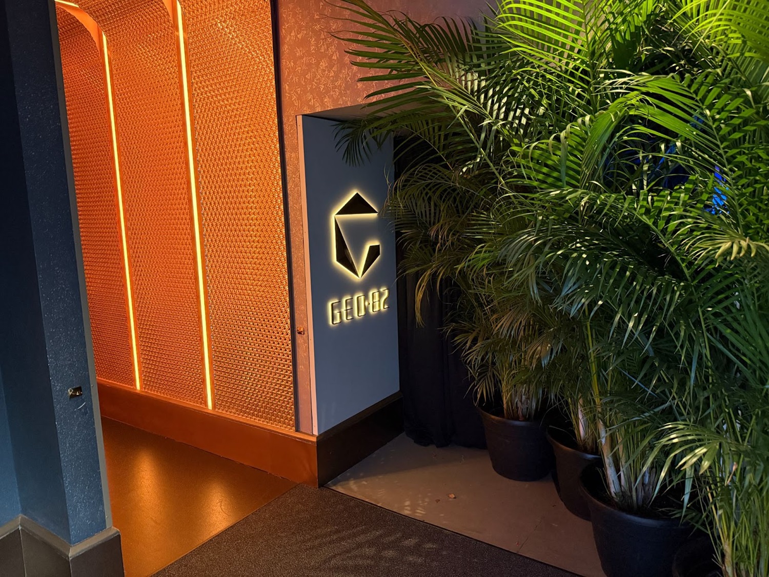 Planters block off access to the entrance area of the attraction, while signage directs visitors to the still-open GEO-82 bar, which opened within the former sponsor lounge a few months ago.