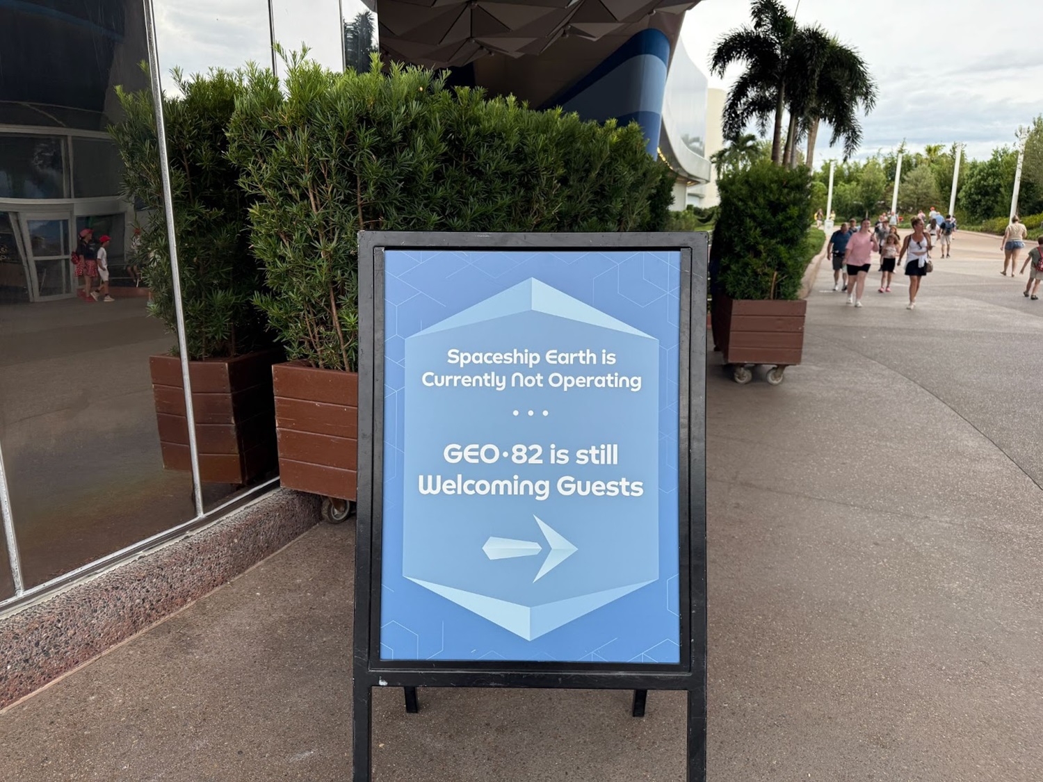 While Spaceship Earth and the Project Tomorrow post-show exhibit area are closed, the recently opened GEO-82 bar remains open. Guests can access GEO-82 through the Project Tomorrow entrance on the west side of Spaceship Earth, near the pathway leading to Journey of Water.