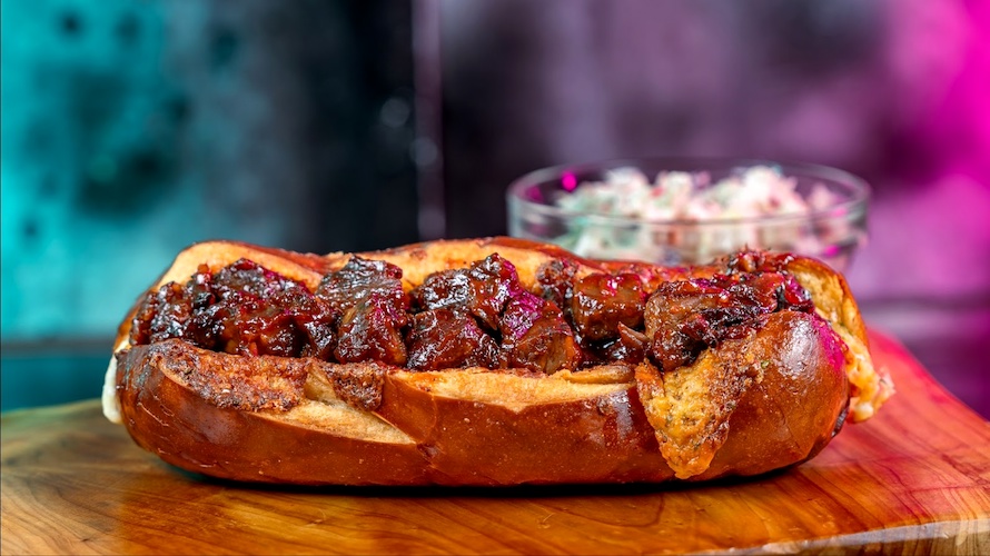 - Nevarro Lava Canyon Bread with Creamy Slaw at Edelweiss Snacks and Maurice's Treats: BBQ smoked burnt ends stuffed cheesy pretzel bread with creamy slaw (New)