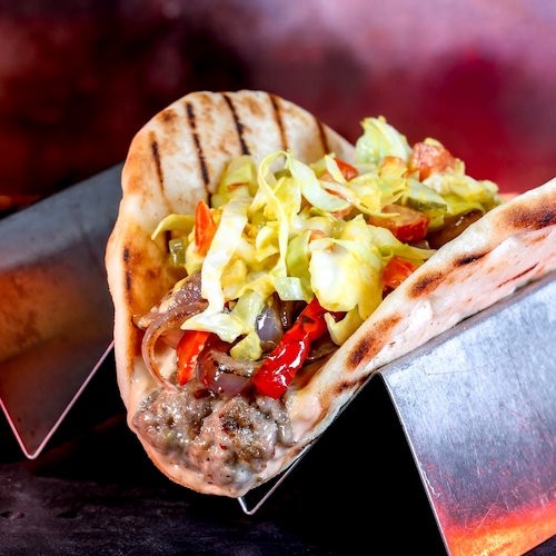 - Loomas Wrap at Ronto Roasters: Chopped IMPOSSIBLE burger, mozzarella, onions and peppers, and mustard slaw wrapped in pita (Plant-based) (New)