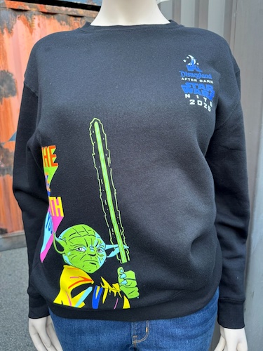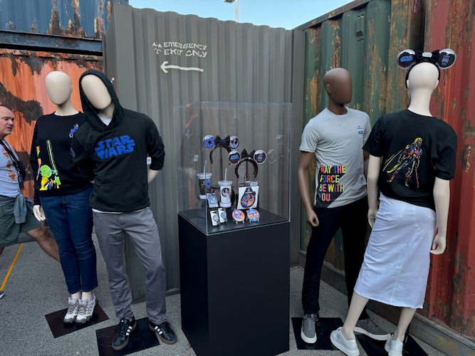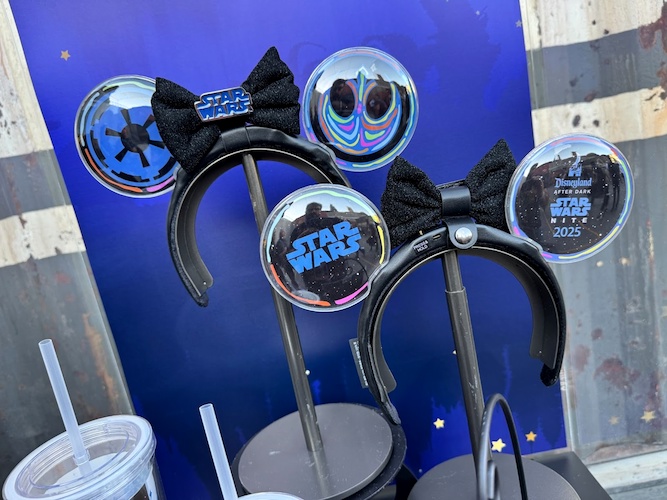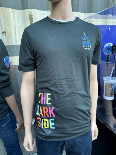 While Disneyland After Dark usually hosts their merchandise location at Tomorrowland’s Starcade, Star Wars Nite is inviting guests further into Galaxy’s Edge to do their Jedi merch trick. Located in the extended queue of Millennium Falcon: Smuggler’s Run, you’ll find an array of apparel, accessories, and collectibles for Star Wars Nite 2025.