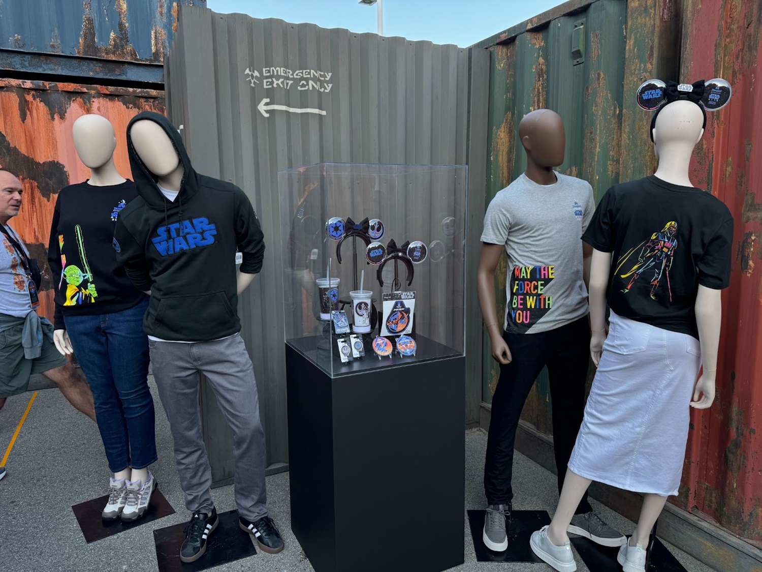 While Disneyland After Dark usually hosts their merchandise location at Tomorrowland’s Starcade, Star Wars Nite is inviting guests further into Galaxy’s Edge to do their Jedi merch trick. Located in the extended queue of Millennium Falcon: Smuggler’s Run, you’ll find an array of apparel, accessories, and collectibles for Star Wars Nite 2025.