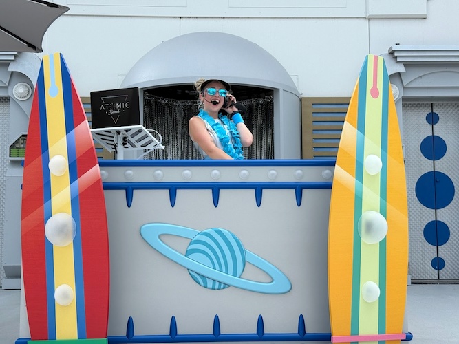 - Between the hours of 11 a.m. and 3 p.m. (basically, the hottest time of the day), guests can dance the Florida heat away with the help of some entertainers, a DJ, and perhaps even a popular alien friend.