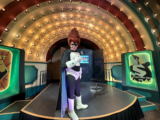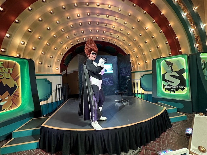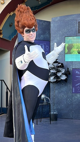 One of the newest villains to arrive at Oogie Boogie Bash, Syndrome from Pixar’s The Incredibles, can be found at the Pixar Pier Bandshell, taunting passersby and those navigating the treat trail in much the same way that Sid from Toy Story did in previous years from this location.