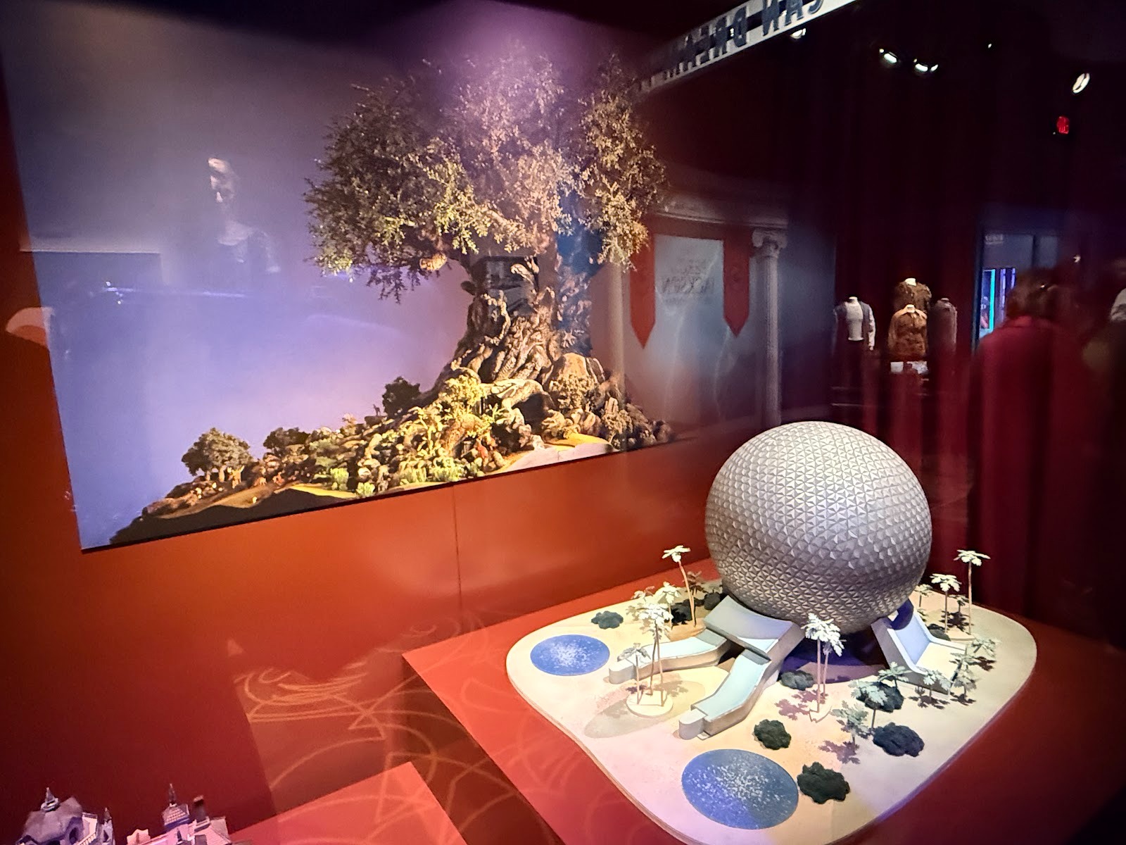 The costumes, including outfits from the Reputation, The Tortured Poets Department, and Midnights era in the show, drew quite a crowd, creating a lengthy queue for the experience. Not featured, a Cardigan. The costumes didn’t take up a Blank Space in the exhibit though - they took over a display case featuring park models of both Spaceship Earth at EPCOT and The Twilight Zone Tower of Terror - which you can see towering over the very park you are in once you leave the exhibit.