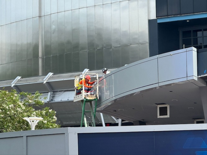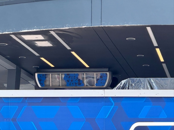 - In front of the new canopy, a new marquee for the attraction can be seen peeking over the construction wall, albeit covered in black plastic wrapping.