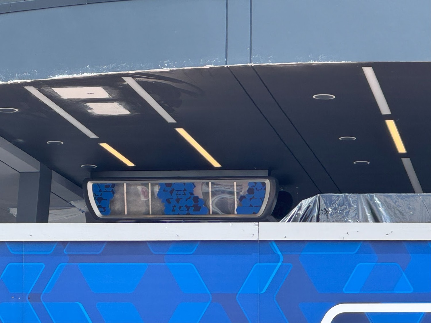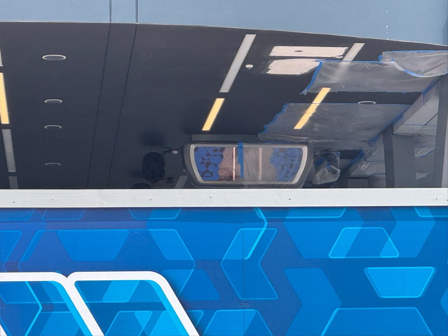 - In front of the new canopy, a new marquee for the attraction can be seen peeking over the construction wall, albeit covered in black plastic wrapping.