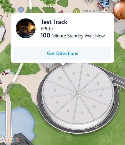 - Guests seem to be really excited to check out the new Test Track, as the attraction has a 100 minute wait as of 9:50 a.m. this morning.