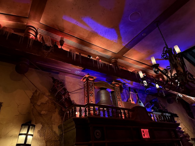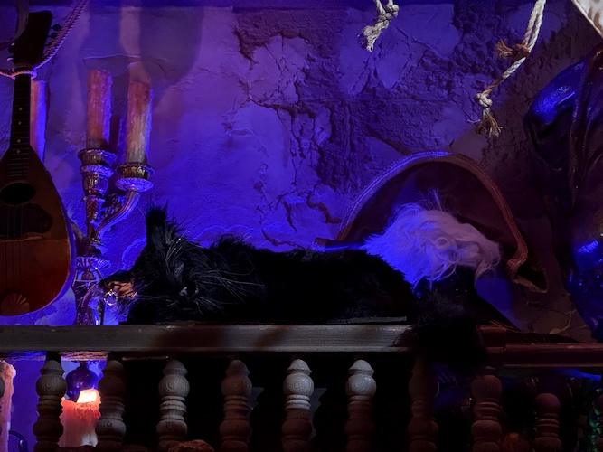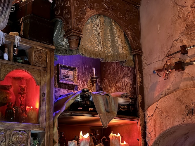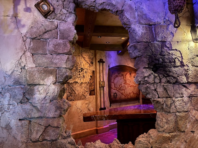 Fans of the attraction will love to see this sleeping pirate with a dangling foot hanging out above the map room, referencing the hairy-legged pirate in the attraction.