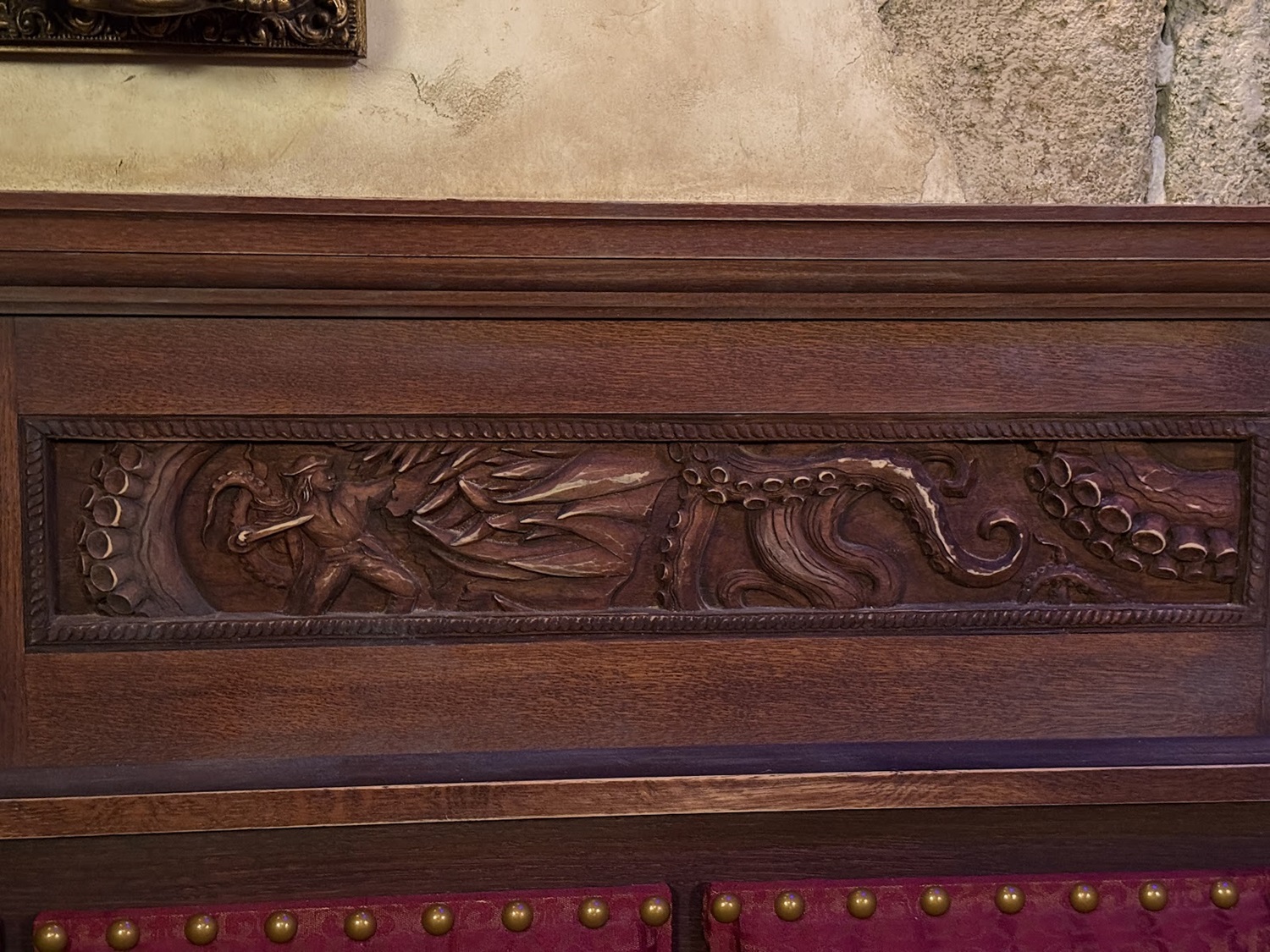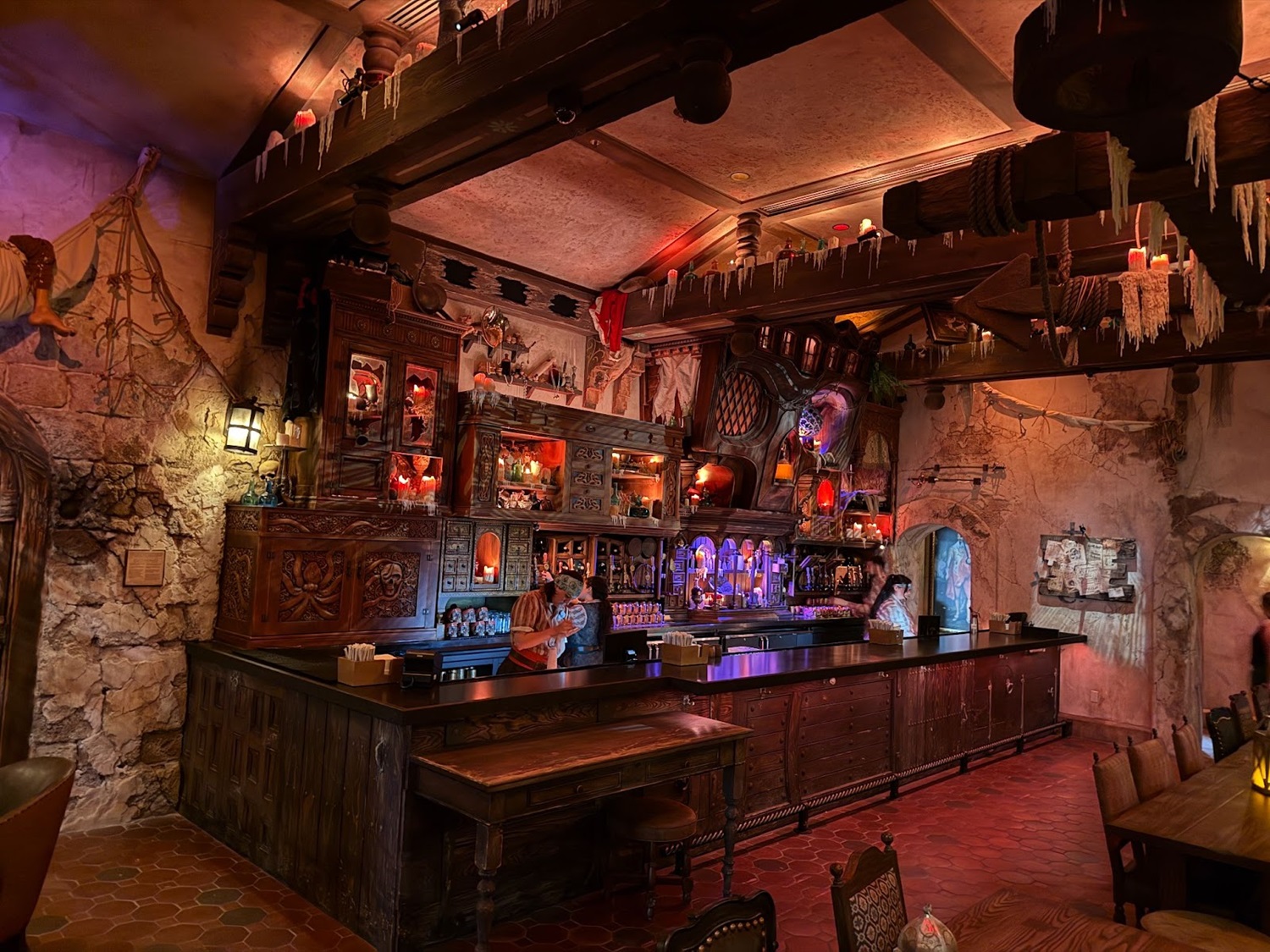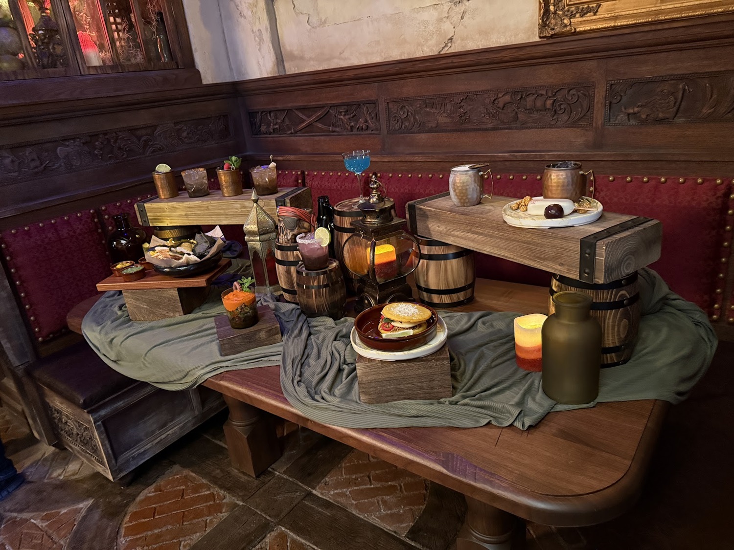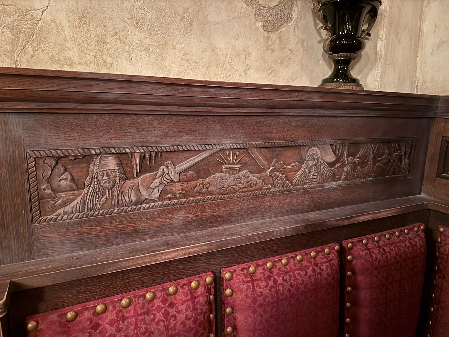 Stunning carved scenes depicting moments from the Pirates of the Caribbean films are found in some of the booths at the new establishment.