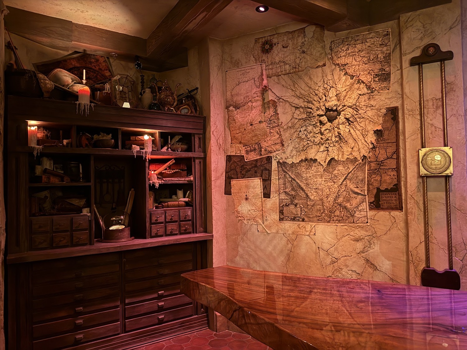The Mapmaker’s Room is filled to the brim with rolled up maps, pieces of parchment, spilled ink and many treasured secrets that belonged to a crazed pirate cartographer.