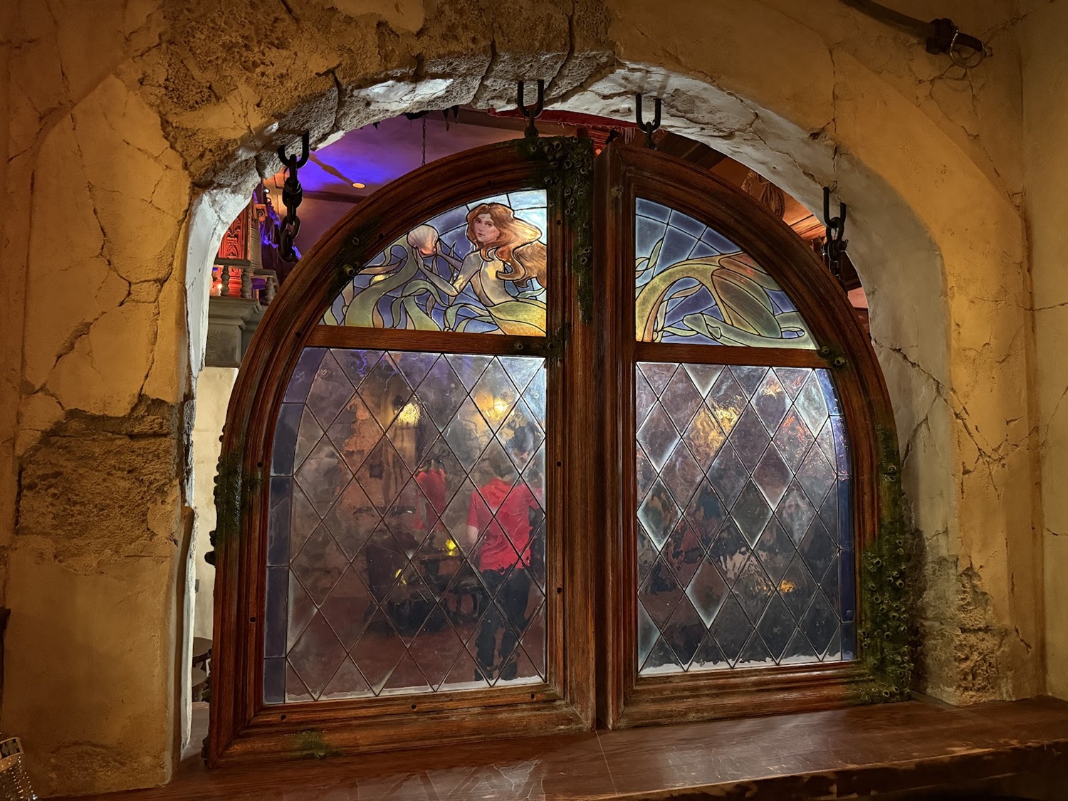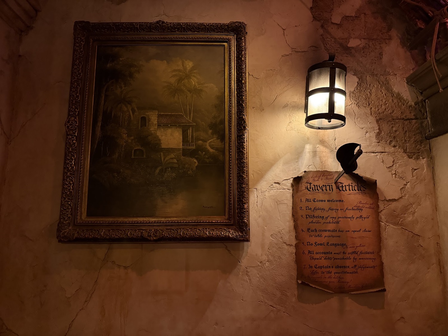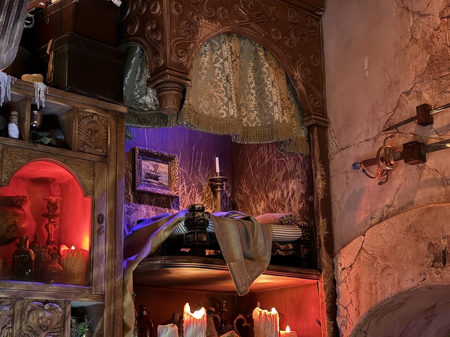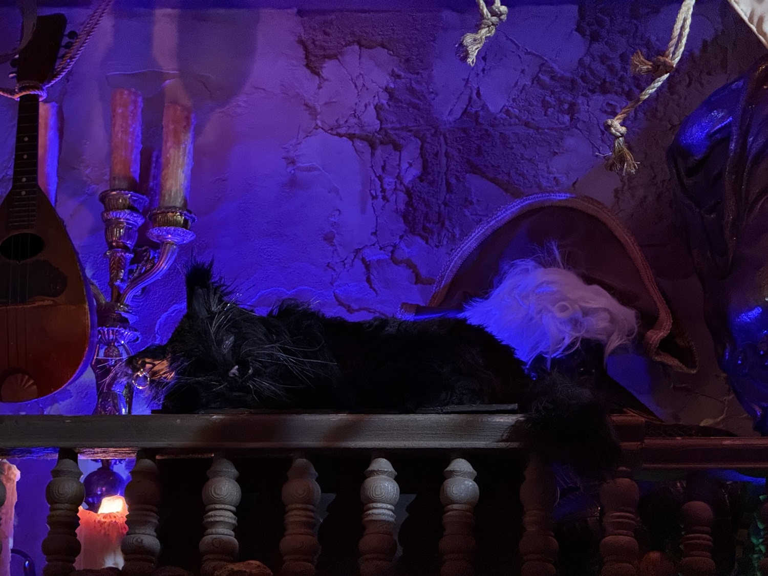 Fans of the attraction will love to see this sleeping pirate with a dangling foot hanging out above the map room, referencing the hairy-legged pirate in the attraction.