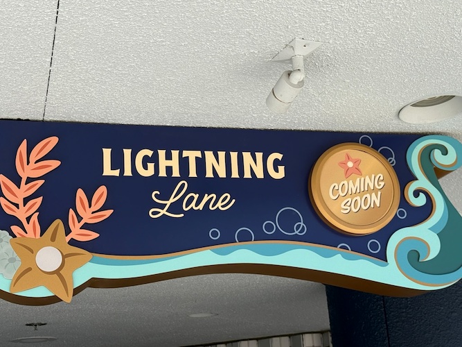 - Outside the former Voyage of The Little Mermaid theater, preparation is underway for the new show with the addition of new Stand-By and Lightning Lane signage.