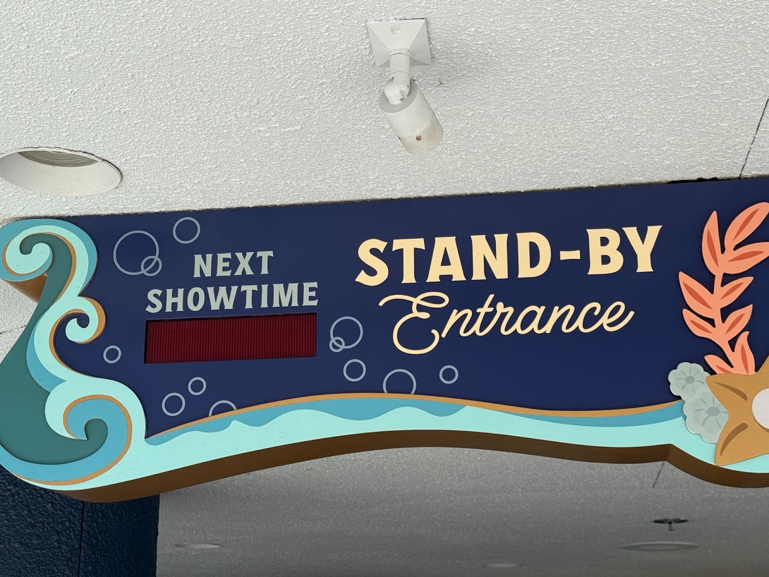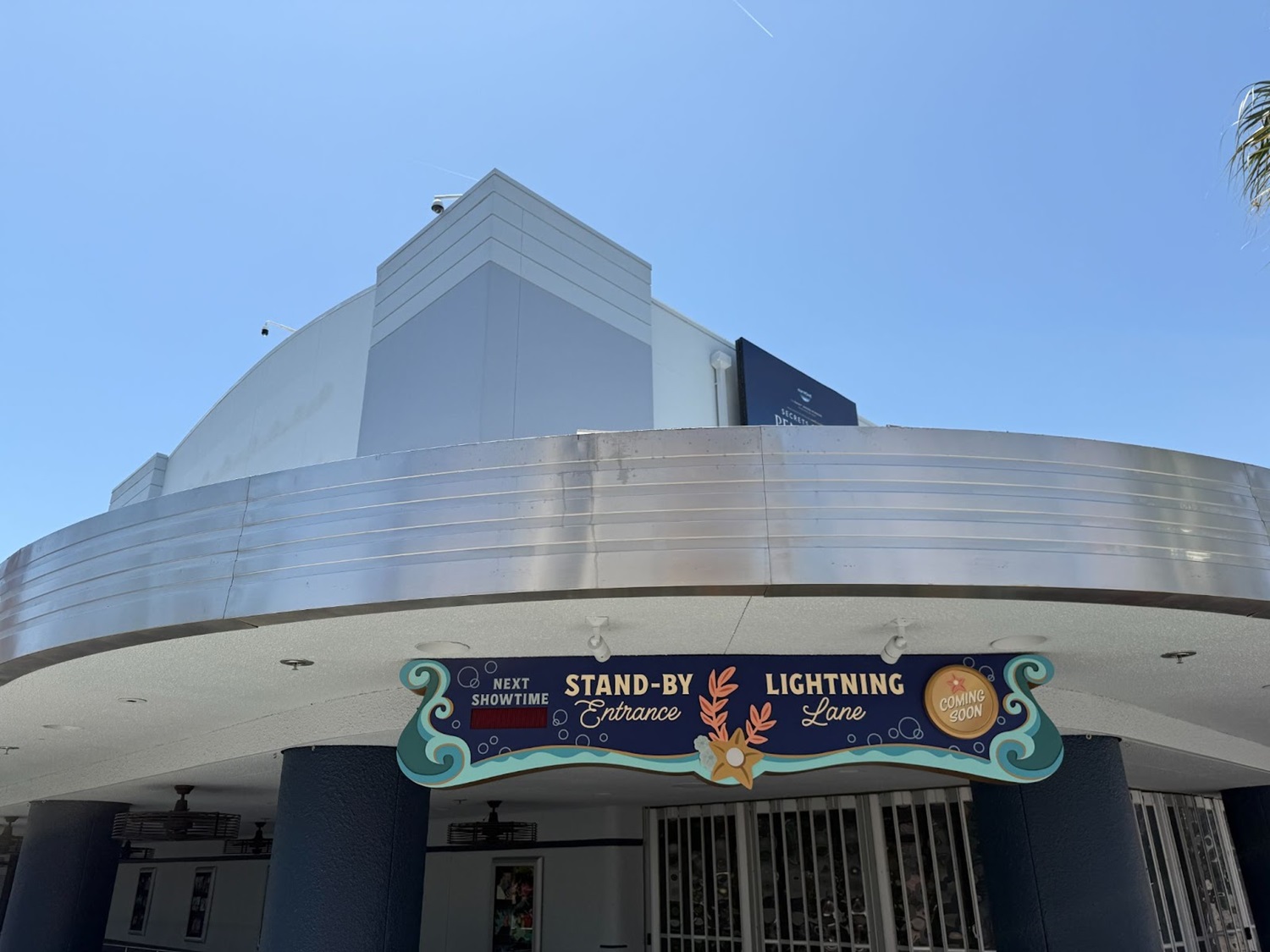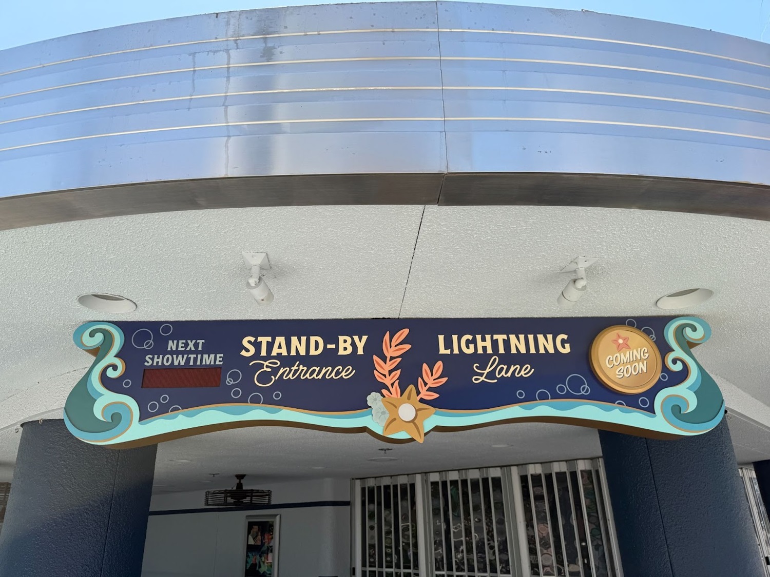 - Outside the former Voyage of The Little Mermaid theater, preparation is underway for the new show with the addition of new Stand-By and Lightning Lane signage.