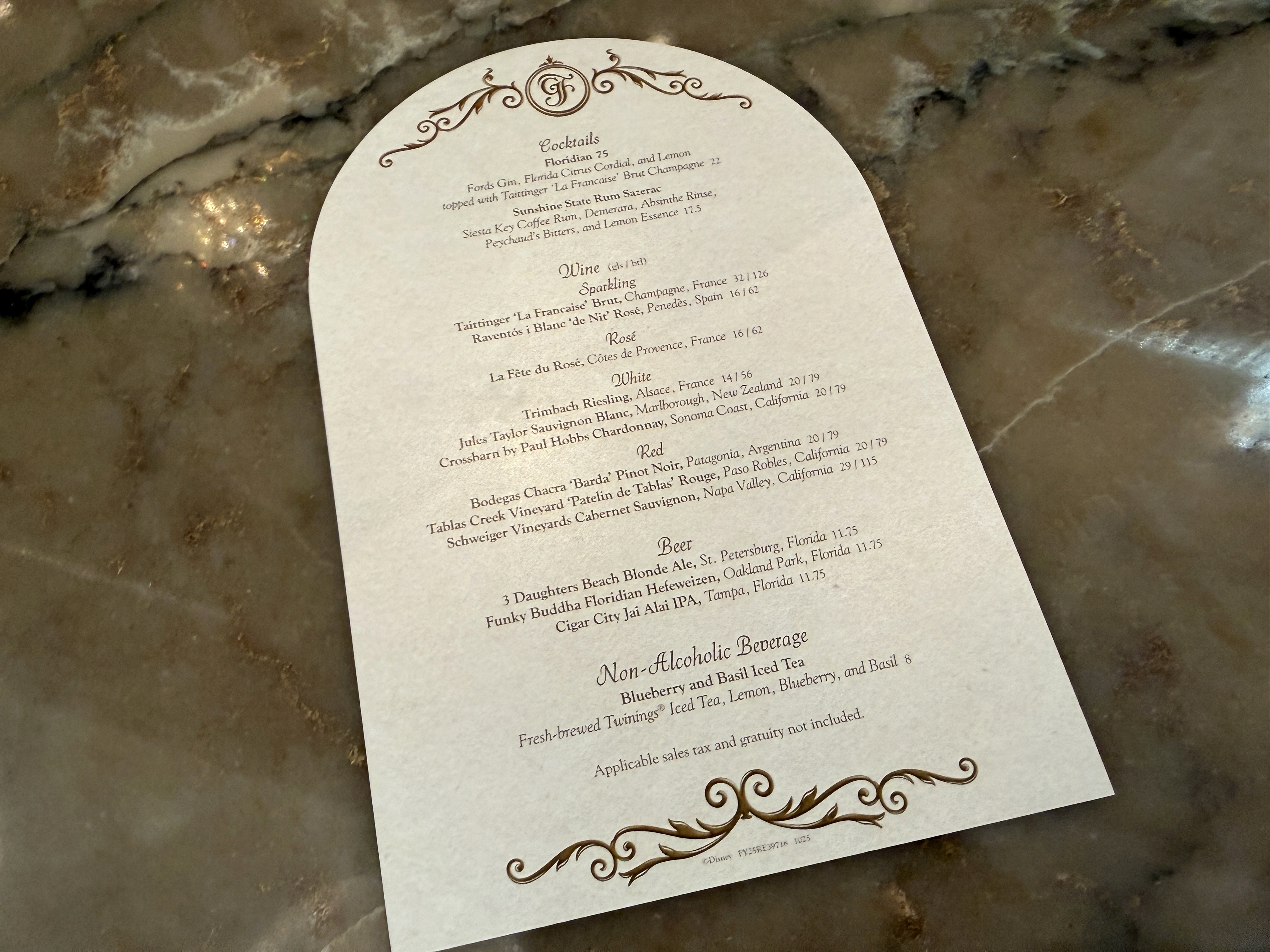 - The location features a light menu featuring champagne, wine, beer, and two signature cocktails: the Sunshine State Rum Sazerac and the Floridian 75. For a refreshing non-alcoholic option, the Blueberry and Basil Iced Tea is a blend of lemon, blueberry, and basil tea.