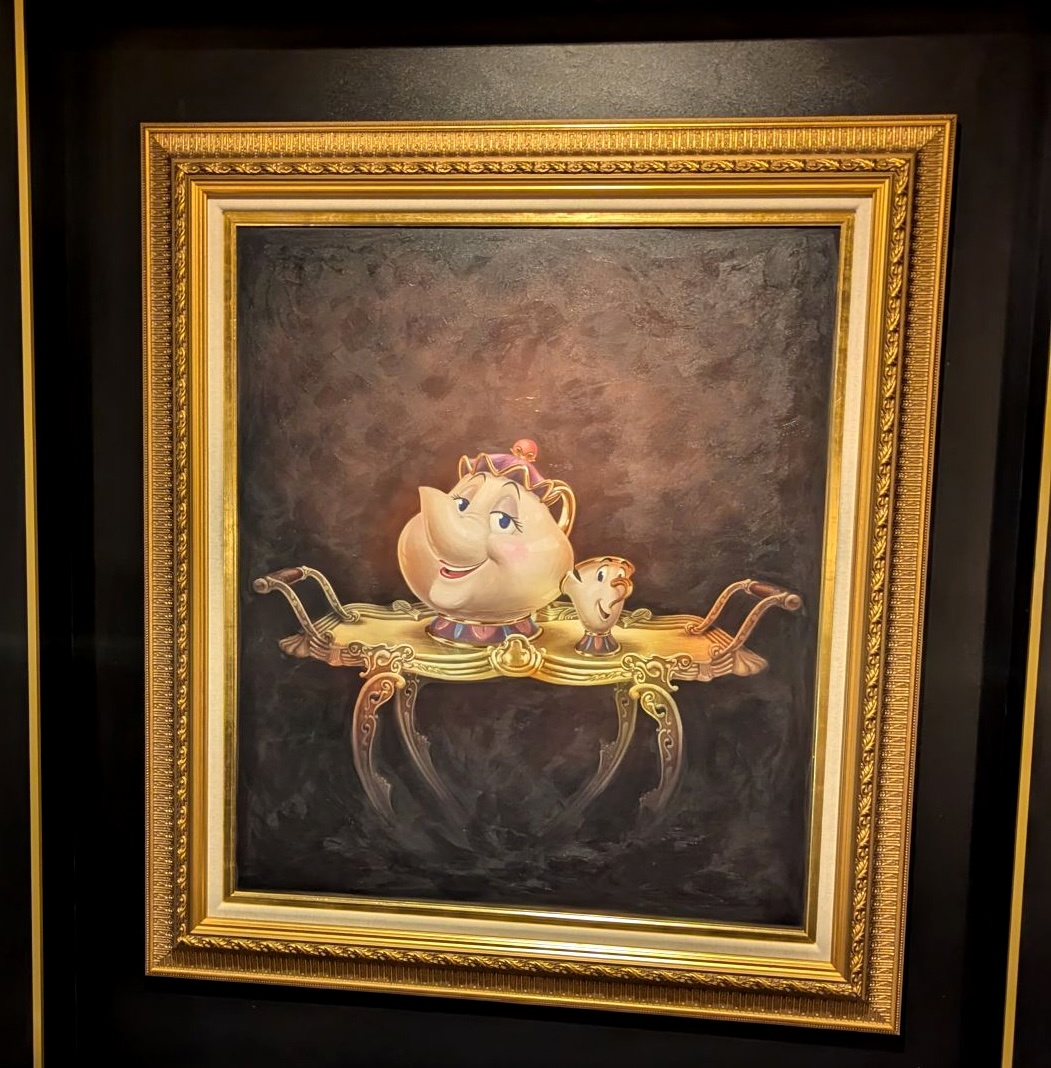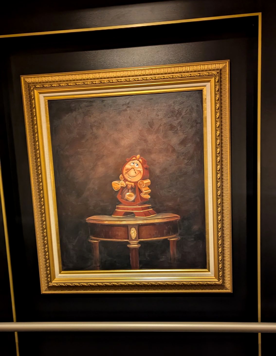 Portraits of all the beloved characters from Beauty and the Beast line the pathway as guests head into The Rose, along with some Beauty and the Beast themed ornamentation.