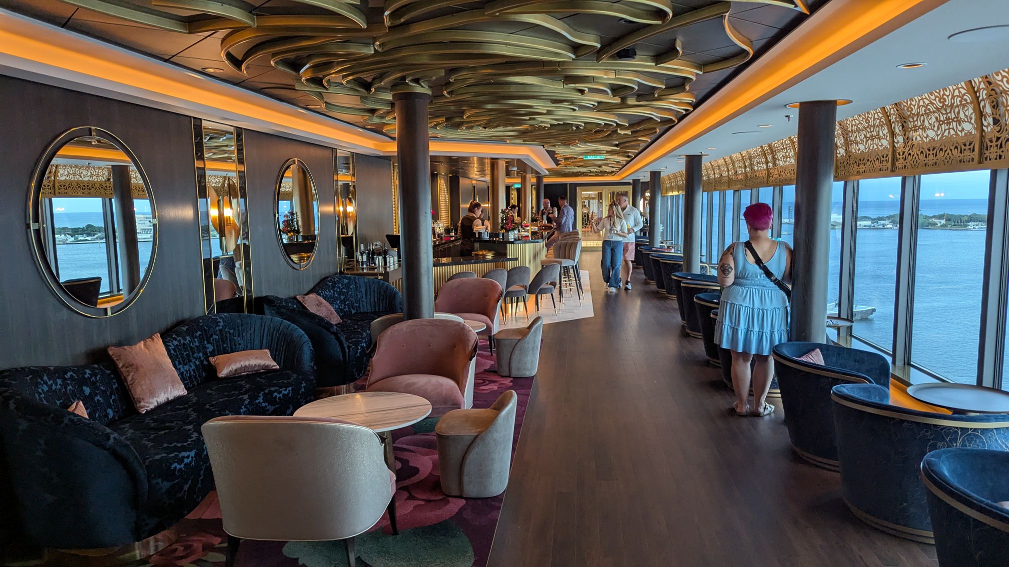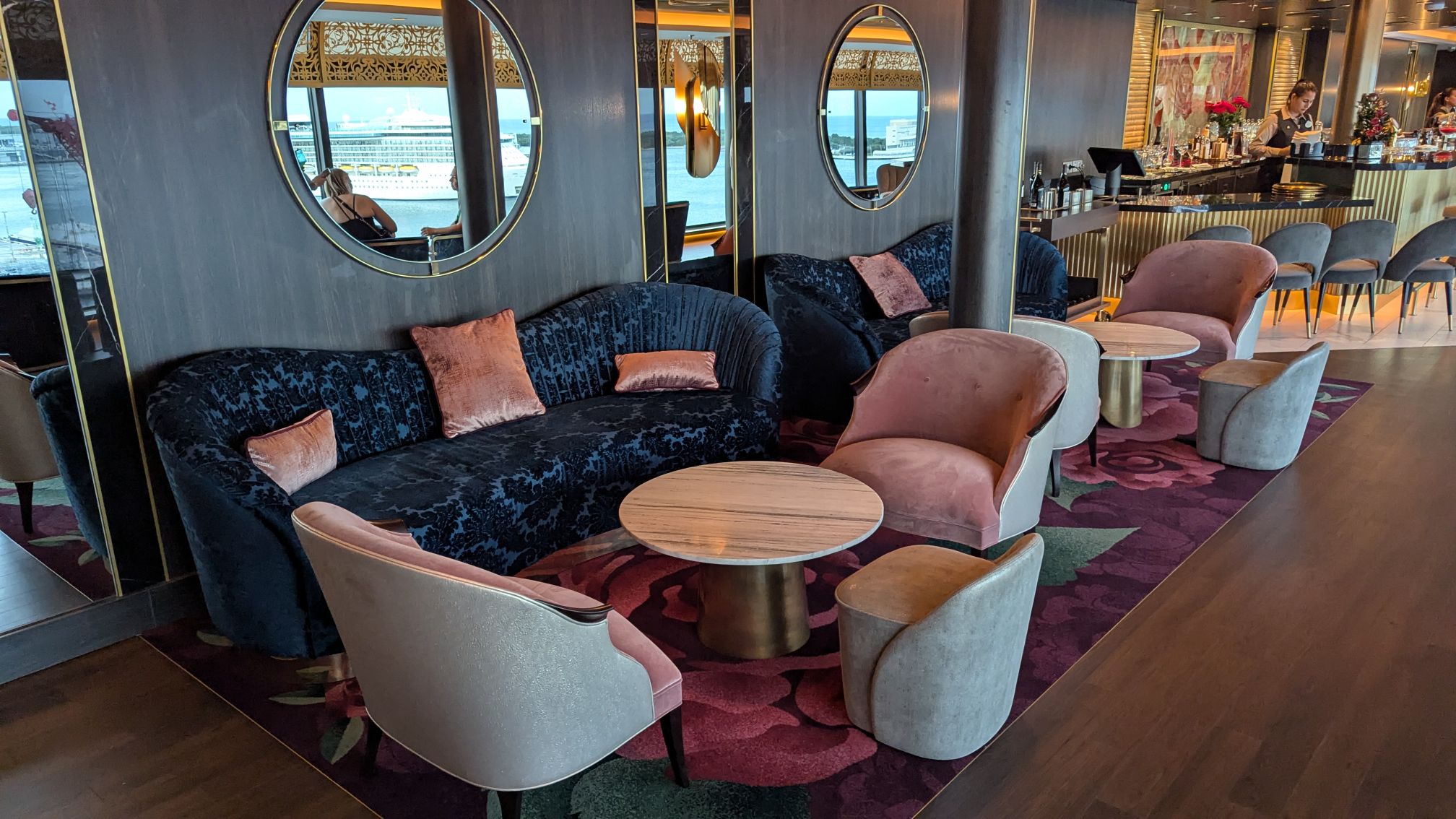 Located on Deck 12, similar to the Disney Wish and the Disney Treasure, guests can indulge in pre- or post-dinner cocktails at this lavish lounge located at the entrance to Palo Steakhouse and Enchanté.