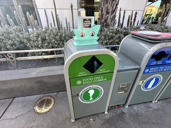 - Food scraps trash cans were recently added to some quick service dining locations at the Disneyland Resort, allowing cast members to more easily sort through the different types of trash.