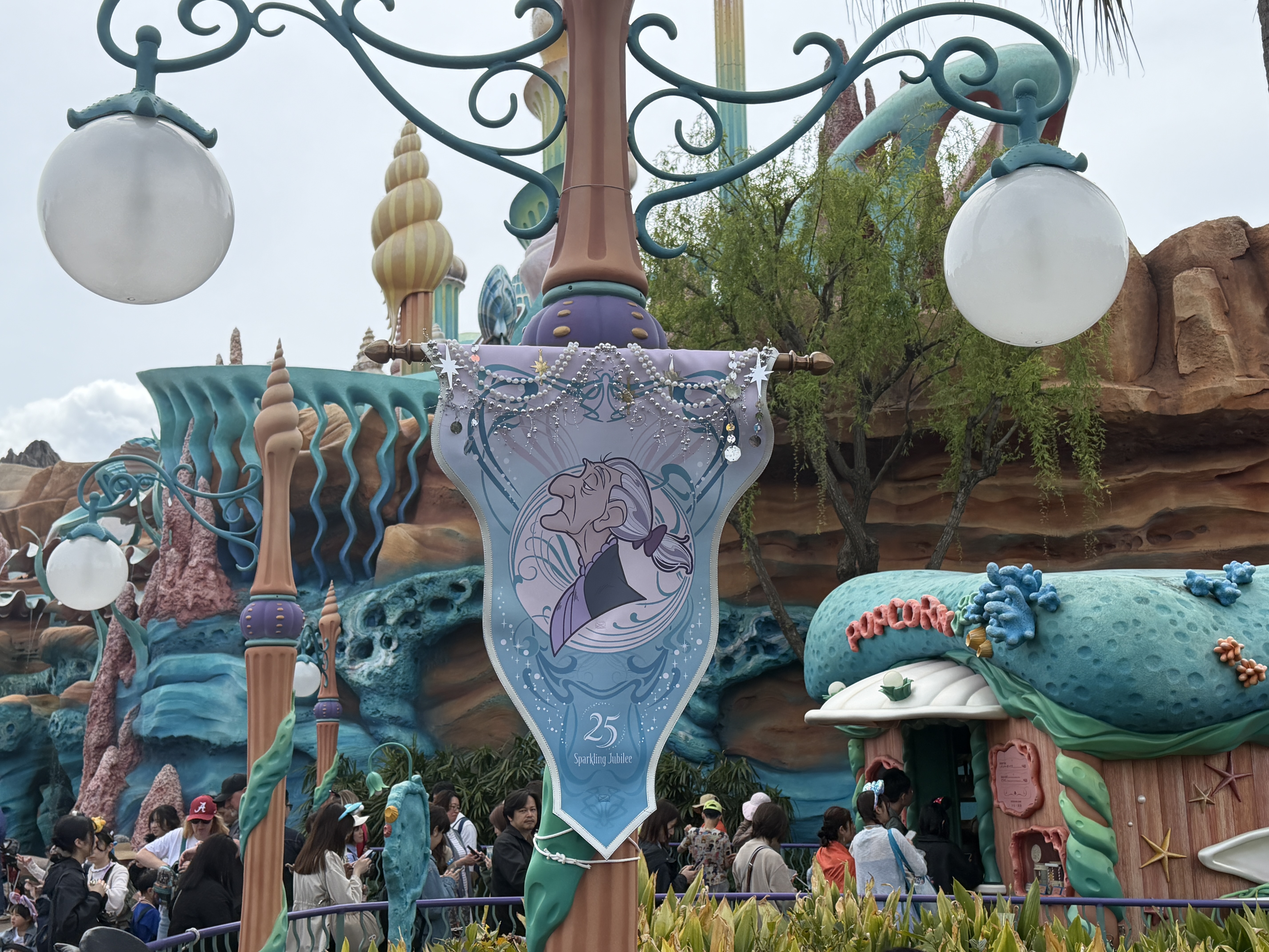 Mermaid Lagoon has also been adorned in banners, though these ones feature characters from the Walt Disney Animation Studios classic, The Little Mermaid, which the whole land (or Port) of the park is based on.