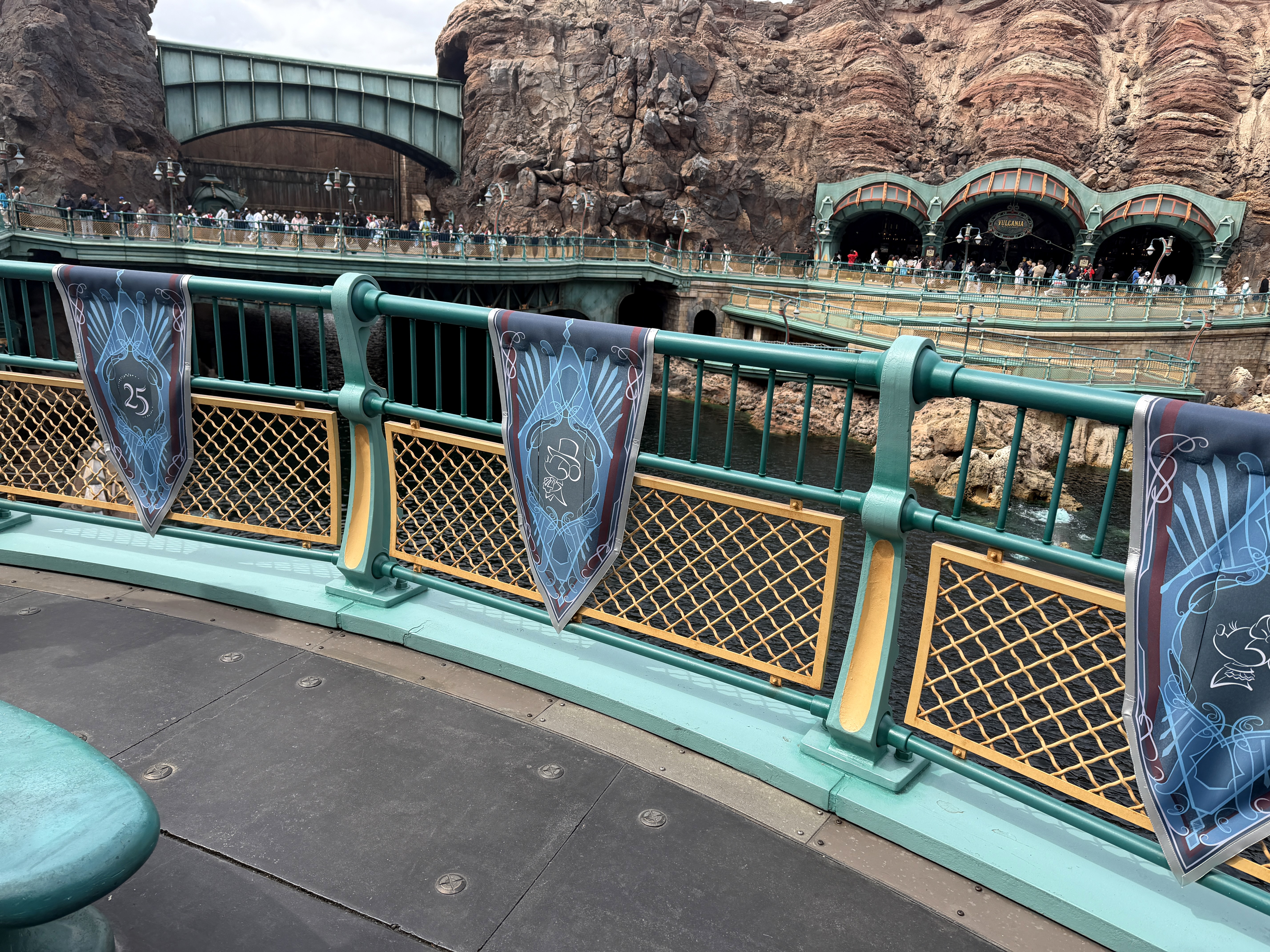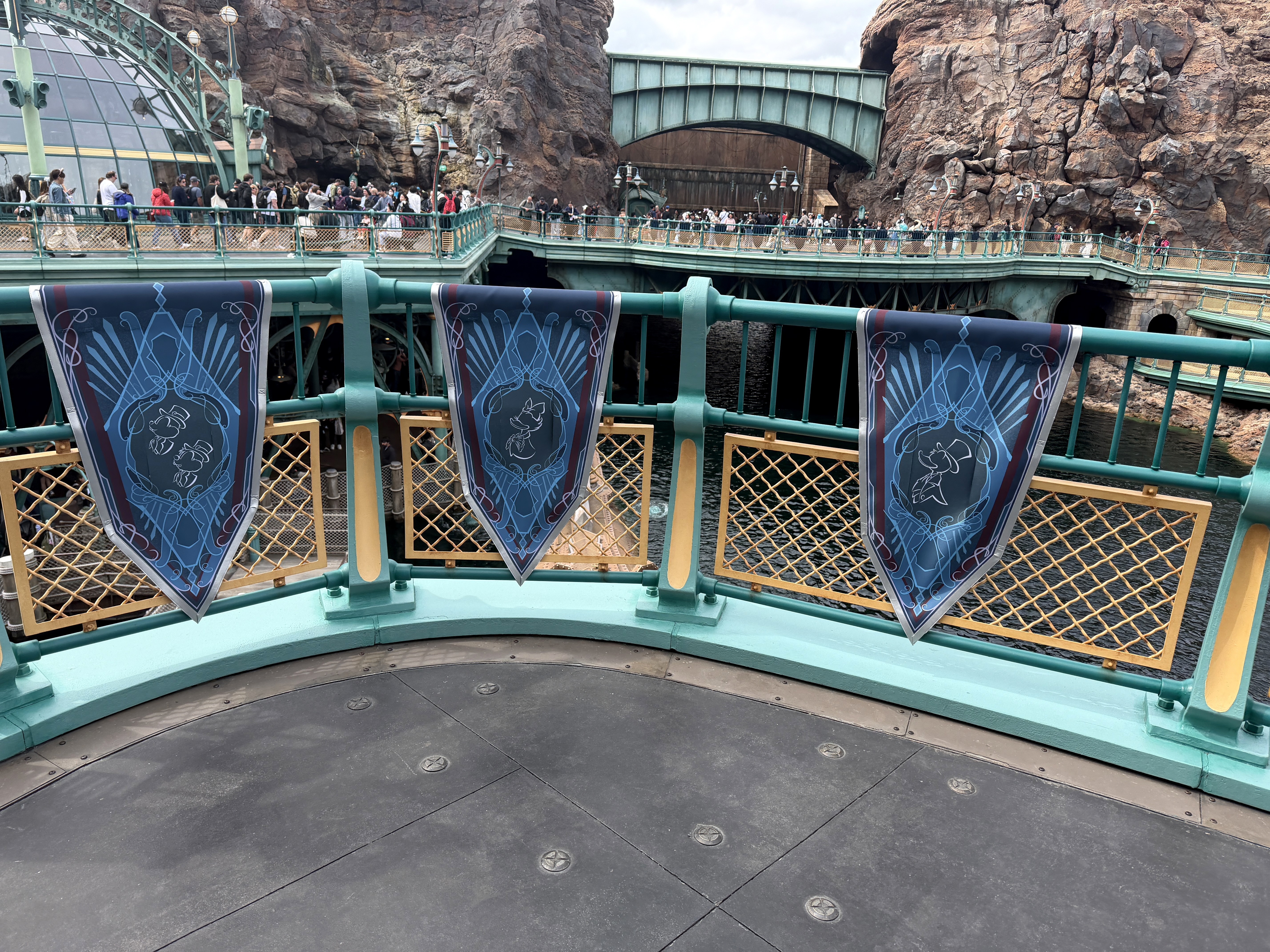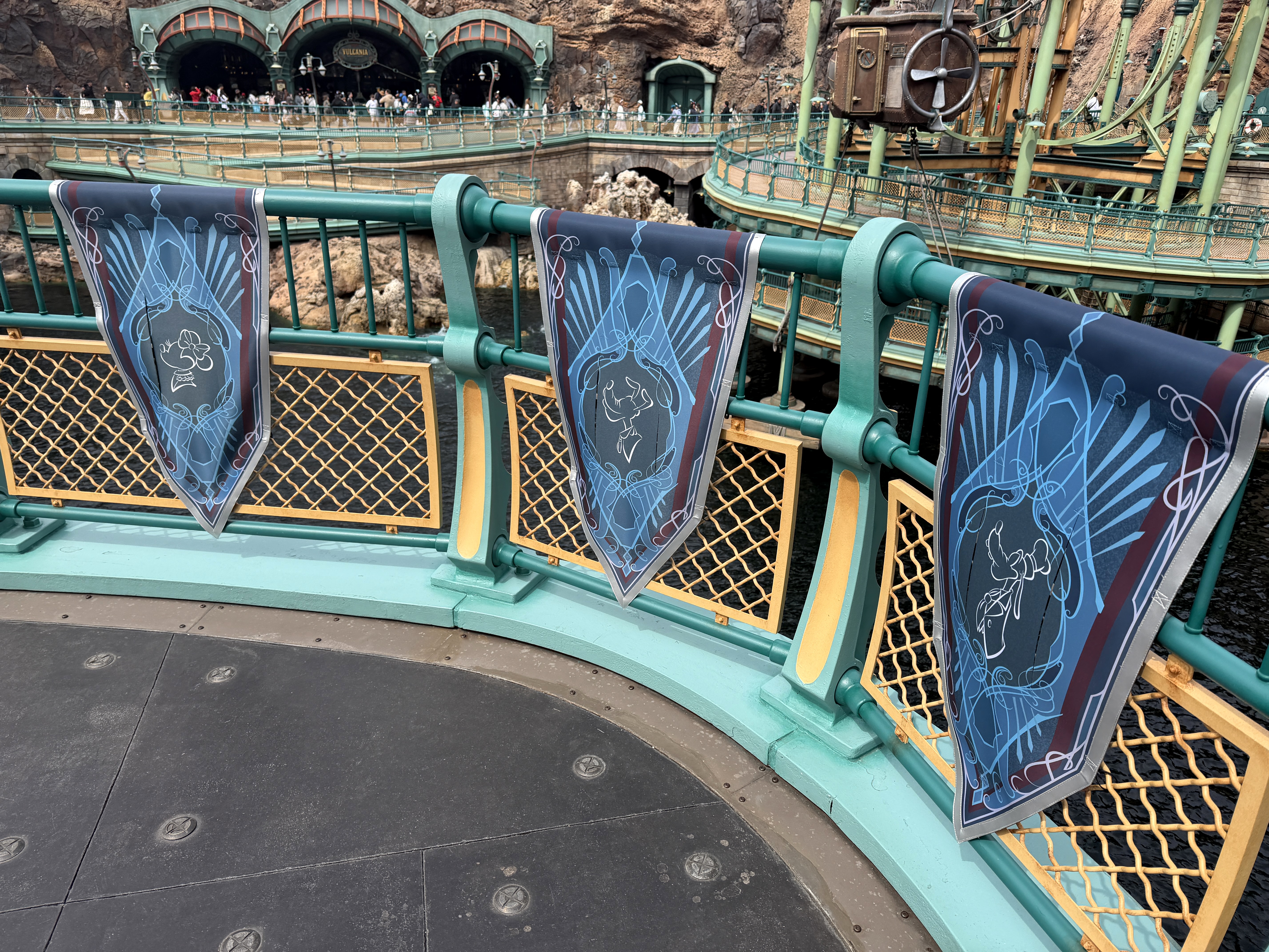 Most of the park is also adorned with banners, like the ones found here in Mysterious Island. Similar to others found throughout the park, these feature Mickey and Friends.