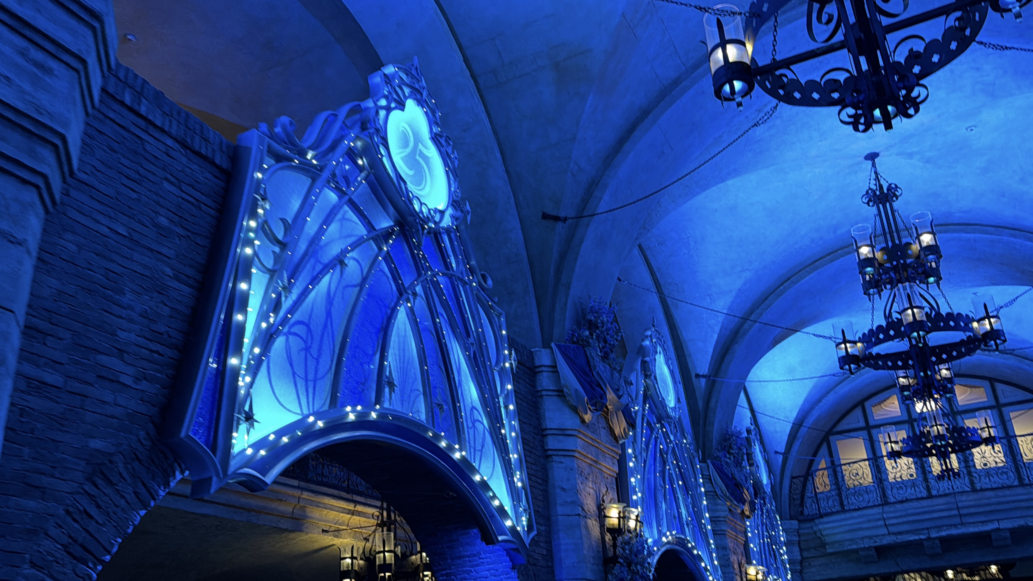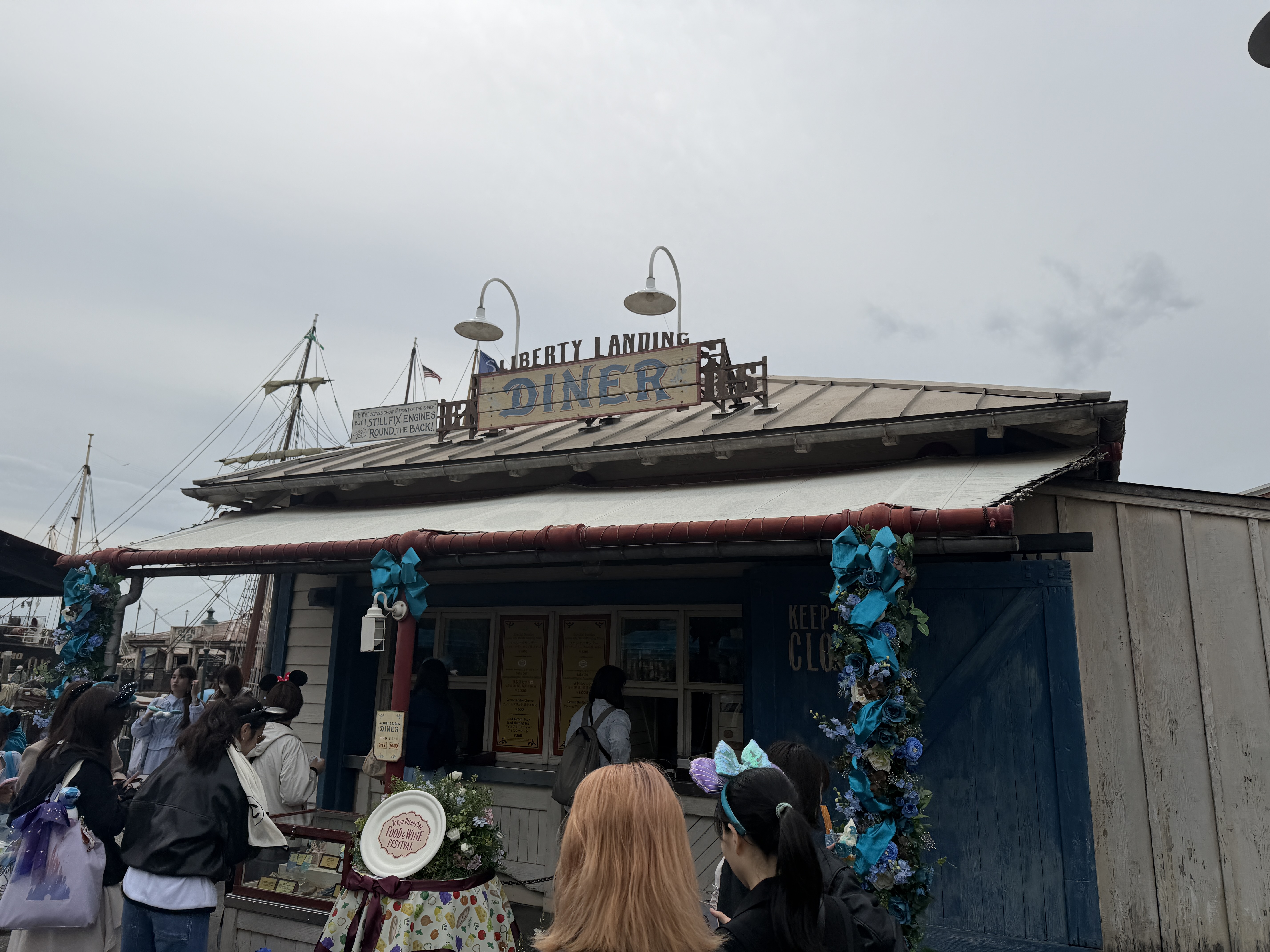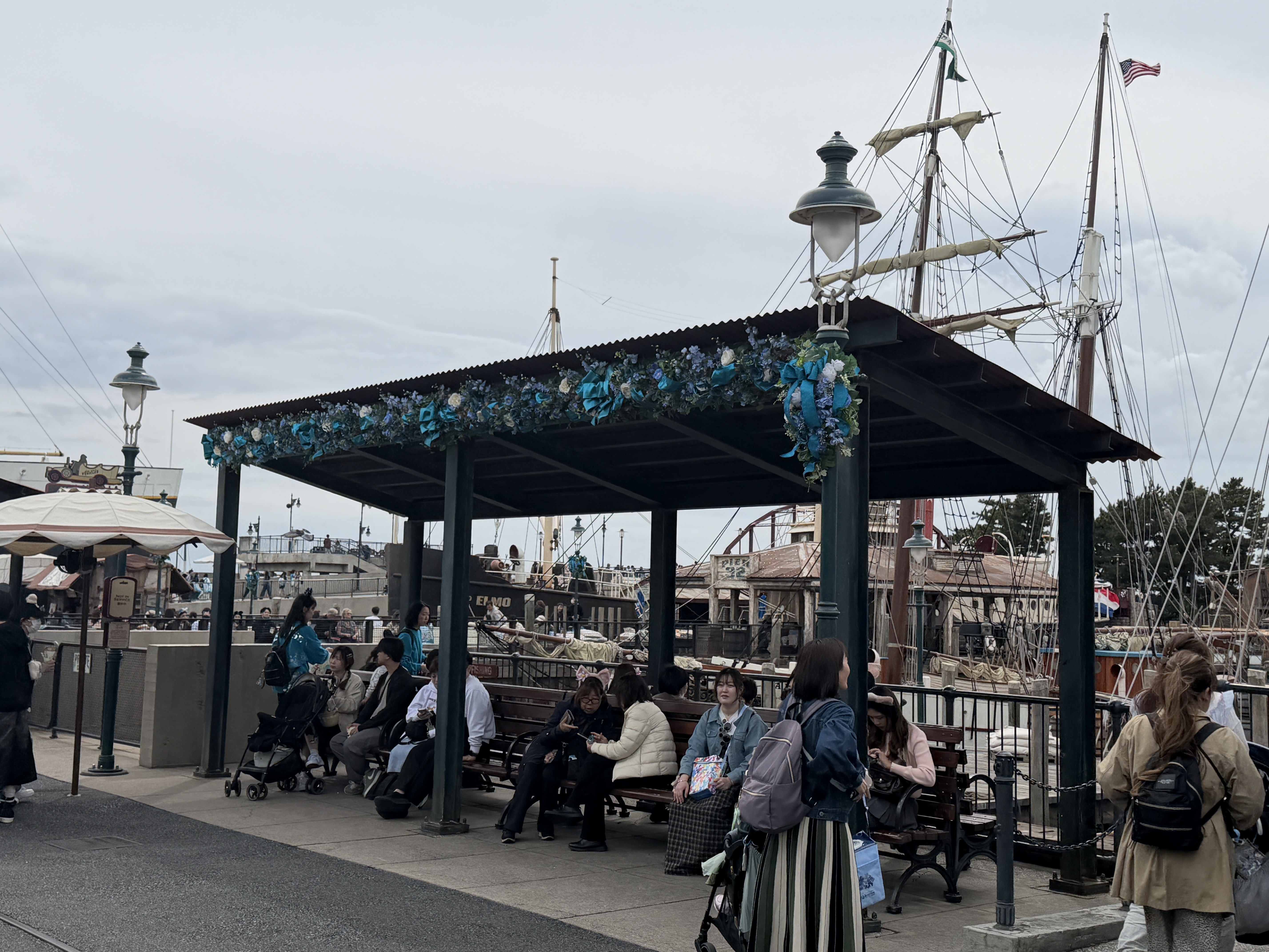 The rest of the park is permeated with decorations, and the new shade of blue that has been introduced for the occasion. This can be seen in floral arrangements and garland throughout the American Harbor.