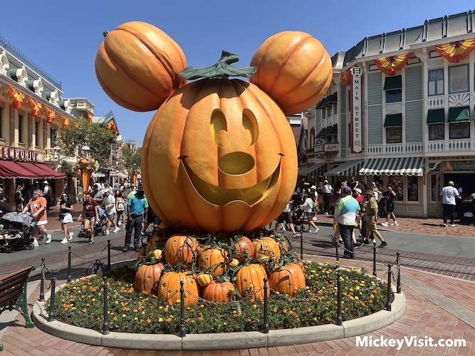 5) Make a list of your top priorities/must-do experiences and plan your day accordingly. We recommend arriving at rope drop in the mornings to head straight to Haunted Mansion Holiday, as this is always extremely popular during the Halloween celebration. As you are on your way into the parks for rope drop, this is a good time to get a picture with the iconic Mickey pumpkin, as the line will be shorter. You can see our full Disneyland Halloween strategy for more details on how to fit in all of the seasonal highlights!
