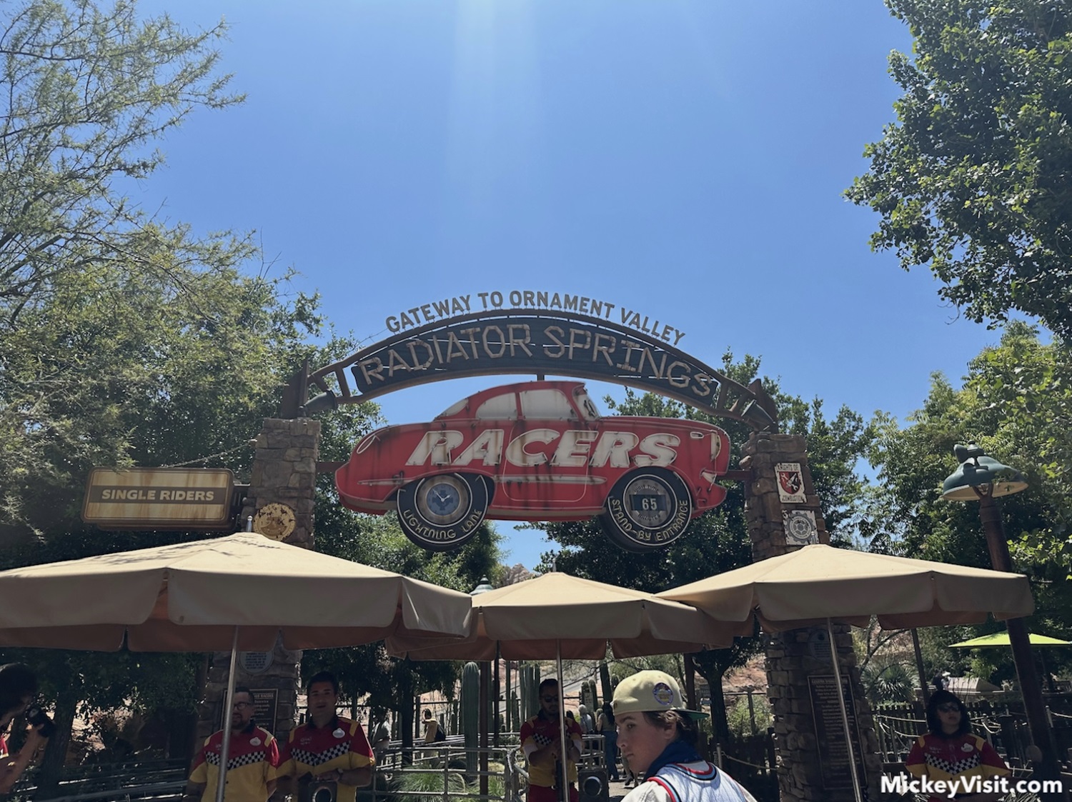These separate Single Rider lines are often a much shorter wait than the standby line. We like to use Single Rider for Radiator Springs Racers in particular to avoid the Lightning Lane Single Pass cost.