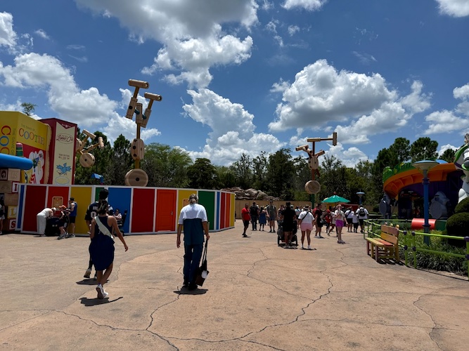 Those who frequent this corner of Disney’s Hollywood Studios will surely notice that the marquee for Toy Story Land coming from this side has also been removed. There is no sign that it won’t return at this point, but also no indication that it will return at this time either. It also appears that the restrooms are still available for use at this time.