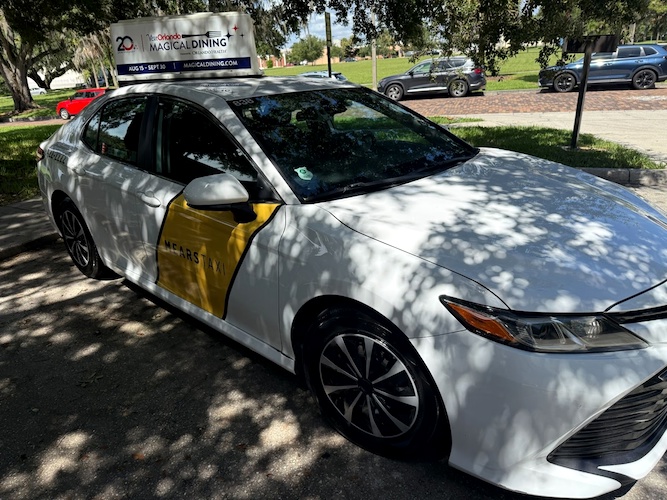 - Throughout the area, Mears taxis will be decorated with ads highlighting Visit Orlando Magical Dining, which you can see a photo of below: