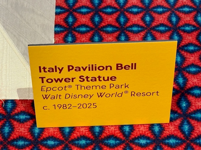During a recent refurbishment to the Italy pavilion’s landmark, St. Mark’s Campanile, the Bell Tower Statue on top was removed and replaced with a new version. Now, the original statue from 1982 is in The Walt Disney Archives.