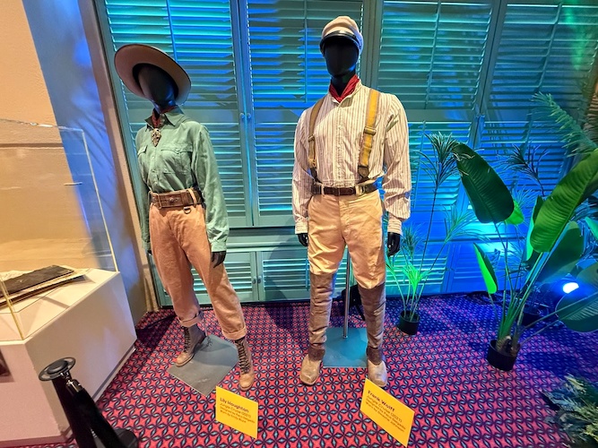 Costumes worn by Emily Blunt and Dwayne Johnson in Jungle Cruise, as well as some props from the film, were on display.