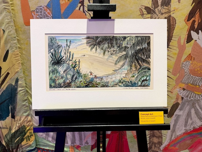 One section displays concept art from a number of classic Disney films, such as The Three Caballeros, Swiss Family Robinson and 20,000 Leagues Under the Sea.