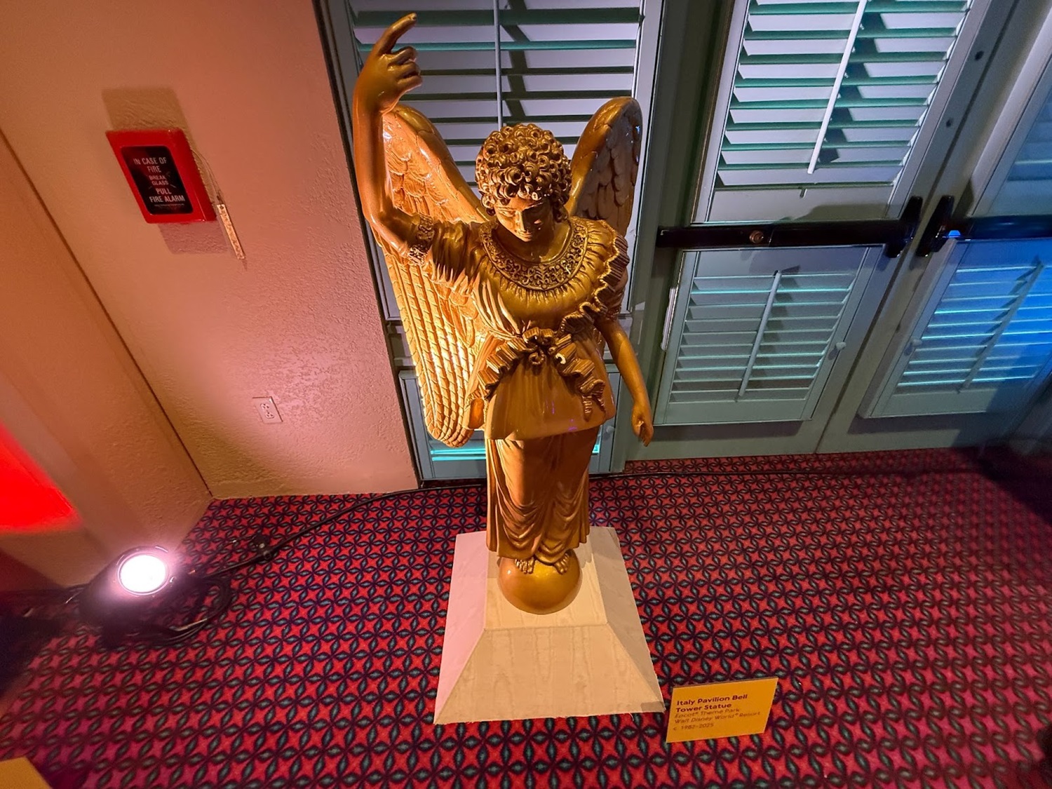 During a recent refurbishment to the Italy pavilion’s landmark, St. Mark’s Campanile, the Bell Tower Statue on top was removed and replaced with a new version. Now, the original statue from 1982 is in The Walt Disney Archives.