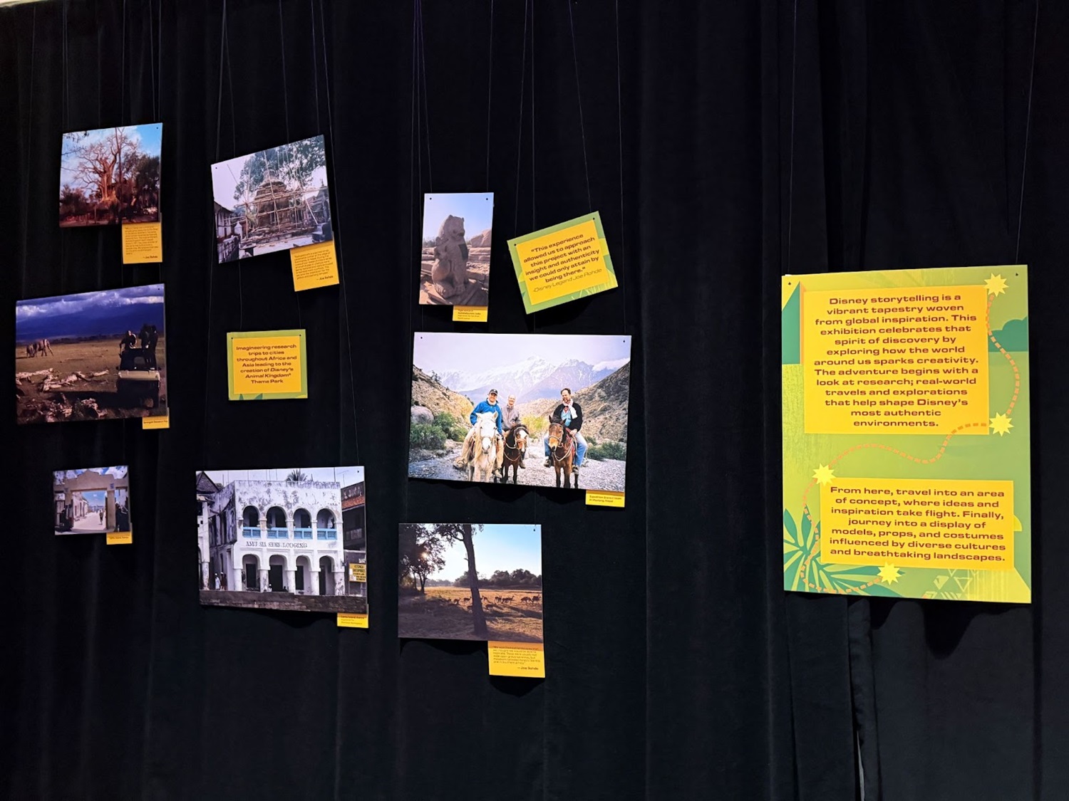 Walking along the main entrance into the exhibit, attendees are immediately greeted by a number of photos of Disney attractions, films and some of the cultural elements that inspired them.
