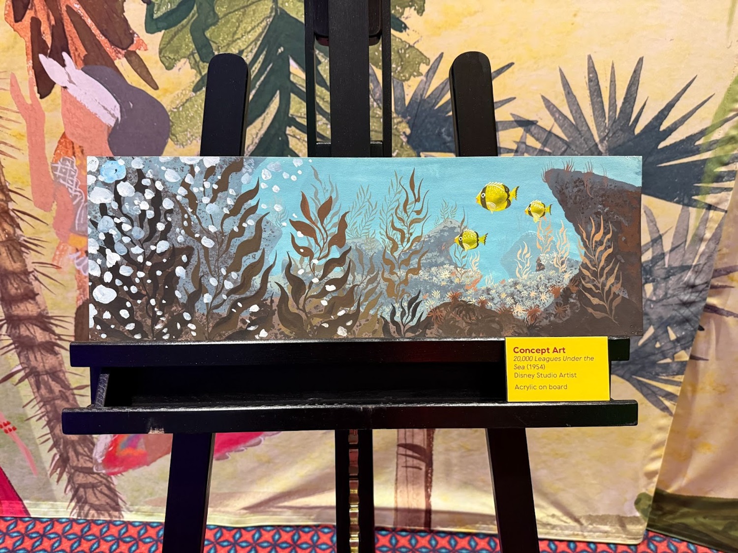 One section displays concept art from a number of classic Disney films, such as The Three Caballeros, Swiss Family Robinson and 20,000 Leagues Under the Sea.