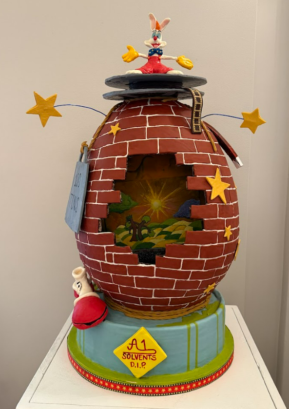 This egg features a brick-patterned warehouse wall with a hole revealing Toontown from Who Framed Roger Rabbit?