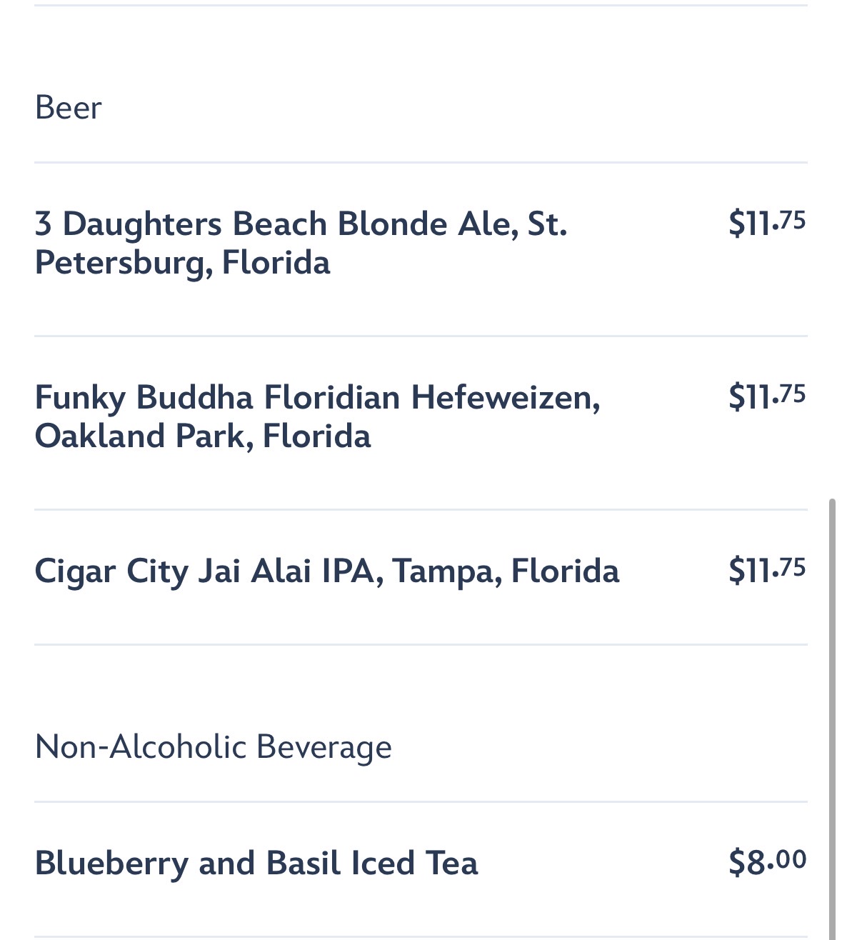 - The location will feature a light menu featuring champagne, wine, beer, and two signature cocktails: the Sunshine State Rum Sazerac and the Floridian 75. For a refreshing non-alcoholic option, the Blueberry and Basil Iced Tea is a blend of lemon, blueberry, and basil tea.