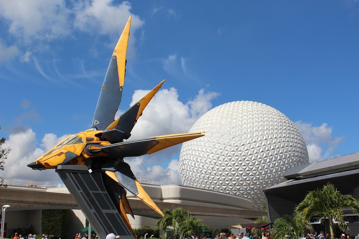 EPCOT was third on our park list, and we were there for one very specific (and very exciting) purpose - Guardians of the Galaxy: Cosmic Rewind. This is, without a doubt, my favorite attraction in all of Walt Disney World. Jessica drove us around the back of Guardians, where we park and walk through an outside gate right next to the coaster’s show buildings. Yes, Guardians has two show buildings - one guests see (formerly the Universe of Energy pavilion building) and a larger building behind it, where most of the coaster excitement occurs. It was fun to see the backstage layout of the attraction buildings - complete with the bottom half of the second show building being painted Disney’s famous “go away green" and the top half painted sky blue.