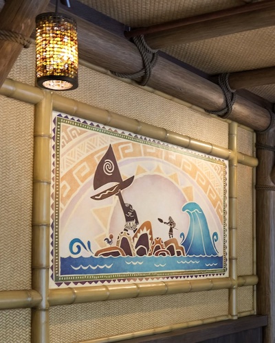 - There’s some fabulous artwork on display too, featuring Moana and Maui on their boat, the villagers of Motunui, and Te Fiti.