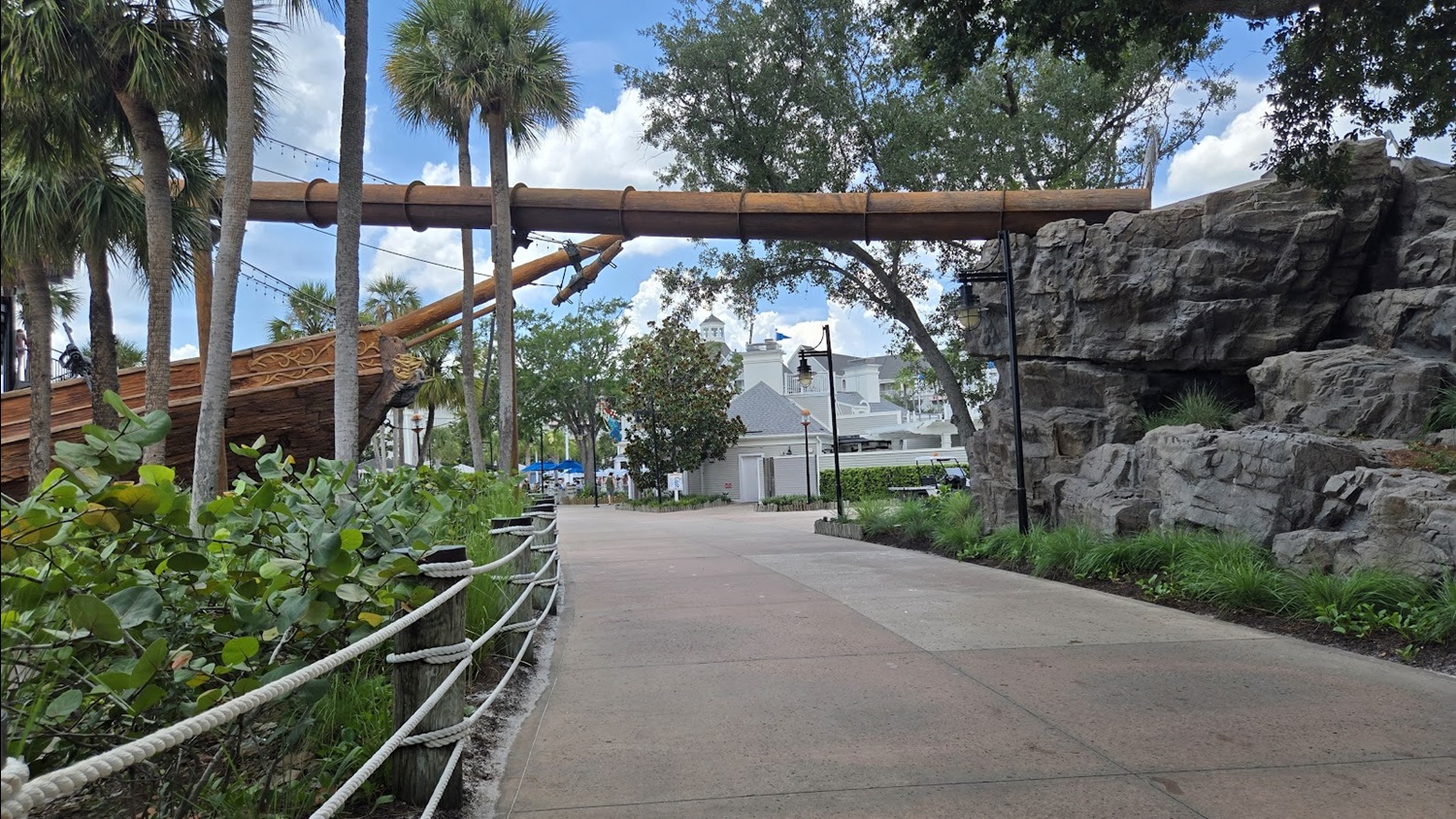We were able to walk through the area today and take some photos of the newly refreshed area, with guests enjoying the pools and slides of Stormalong Bay once again. Areas of the complex, including the grotto hot tubs, are blocked by A-frames saying that these areas are not available at this time. Other construction work is currently taking place on the Beach Club side of the pool, with construction walls extending beyond the pool area and into the great lawn leading up to the lobby doors. As such, interior corridors that previously allowed access to this area are blocked off and locked as well.