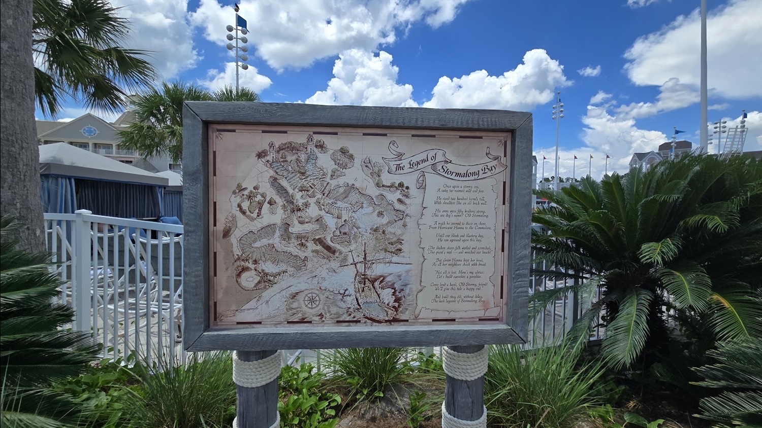 Last month, much ado was made about a new storytelling map that was installed at the pool as part of the refurbishment, and we found it. In it, the full poem/story of the pool complex is revealed, channeling a storm rhyme a la Disney’s Typhoon Lagoon.