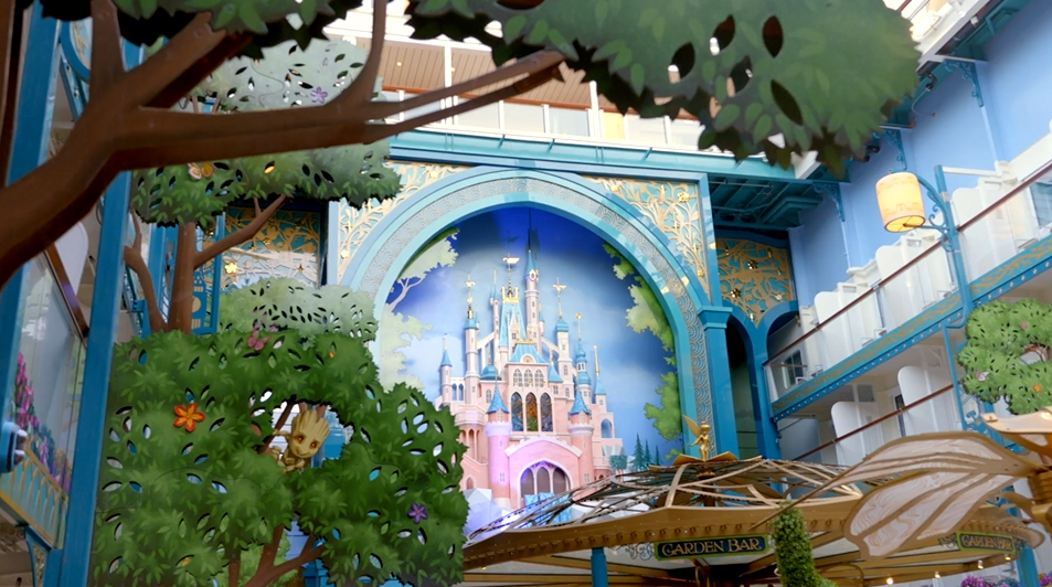At the heart of the ship lies Imagination Garden, a space inspired by a theme park’s Main Street, featuring a storybook-style castle at sea, a lush garden with winding pathways and streams, and a massive stage equipped with one of the largest LED screens ever installed on a Disney Cruise Line ship. Imagineers faced unique engineering challenges, including designing spaces to fit into strict weight limits to ensure the ship’s efficiency. The creative teams had to think outside of using just steel.