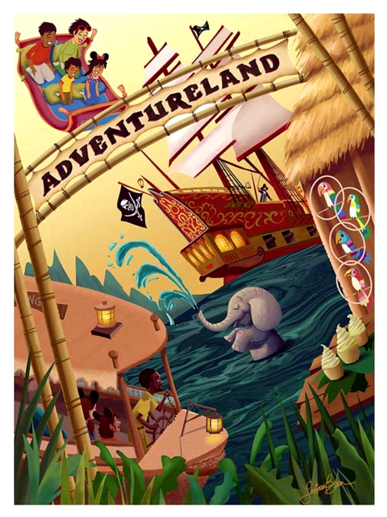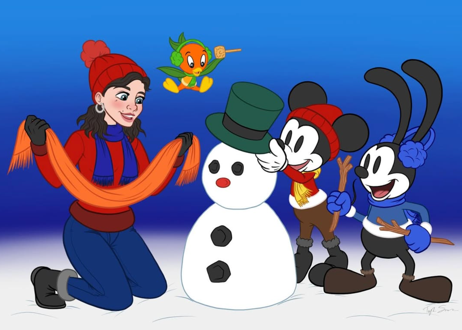 Known for animated-style illustrations, David’s work captures movement, humor, and the spirit of Disney storytelling.