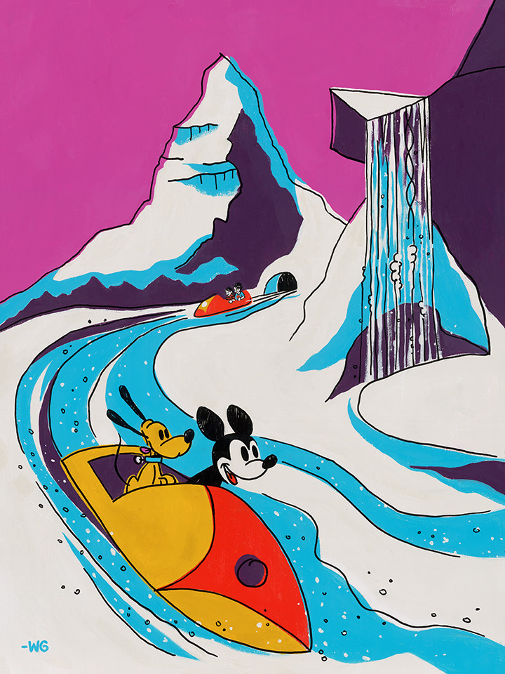 Will Gay is known for his bold, dynamic artwork that blends classic Disney imagery with contemporary flair. His pieces often feature strong lines, rich color, and a sense of movement that captures the spirit of beloved characters in new, engaging ways.