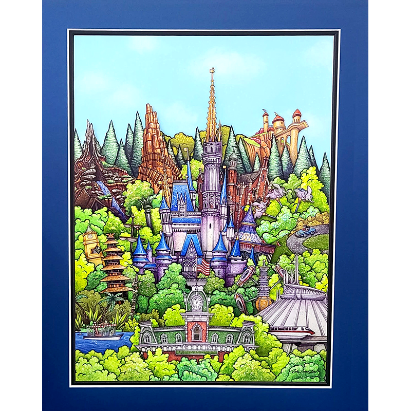Doug Bolly is a Disney artist known for his whimsical, character‑driven illustrations that celebrate the fun and nostalgia of Disney parks and stories. His vibrant style often highlights classic Disney icons with a fresh, playful twist, making his work a fan favorite at events like the EPCOT International Festival of the Arts. Bolly’s pieces resonate with guests of all ages, combining bold color, expressive detail, and a love for Disney that shines through in every creation.