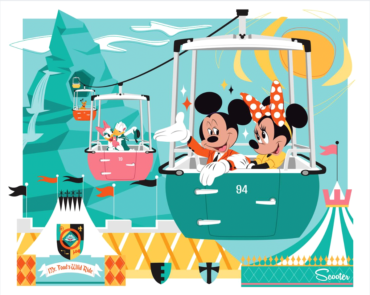 A beloved Disney painter, Trevor creates colorful, character-driven art that captures the magic and nostalgia of Disney films and parks.