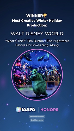 “What’s This? Tim Burton’s The Nightmare Before Christmas Sing-Along” Receives a Brass Ring Award at This Year's IAAPA Honors